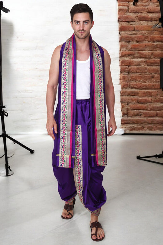 Unstitched Silk Dhoti with Stole Set - 4.25 Mtr Dhoti and 2.25 Mtr Angwastra