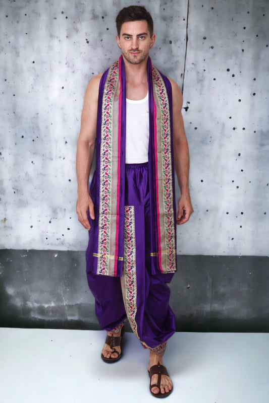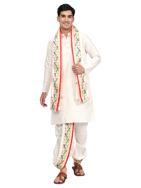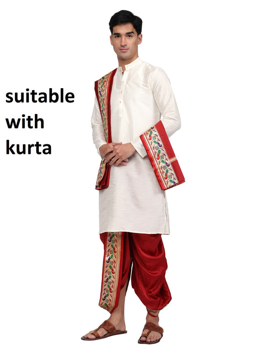 Dhoti Pant for Men - Silk Dhoti with Stole - Ready Dhoti Set