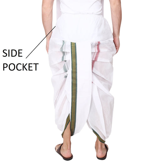 Mayur-Paithani Border White Ready to Wear Dhoti Set