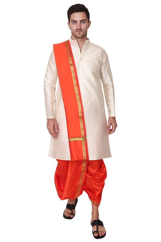 Orange - Bhagwa - Saffron - Dhoti Pant for Men with Angwastra