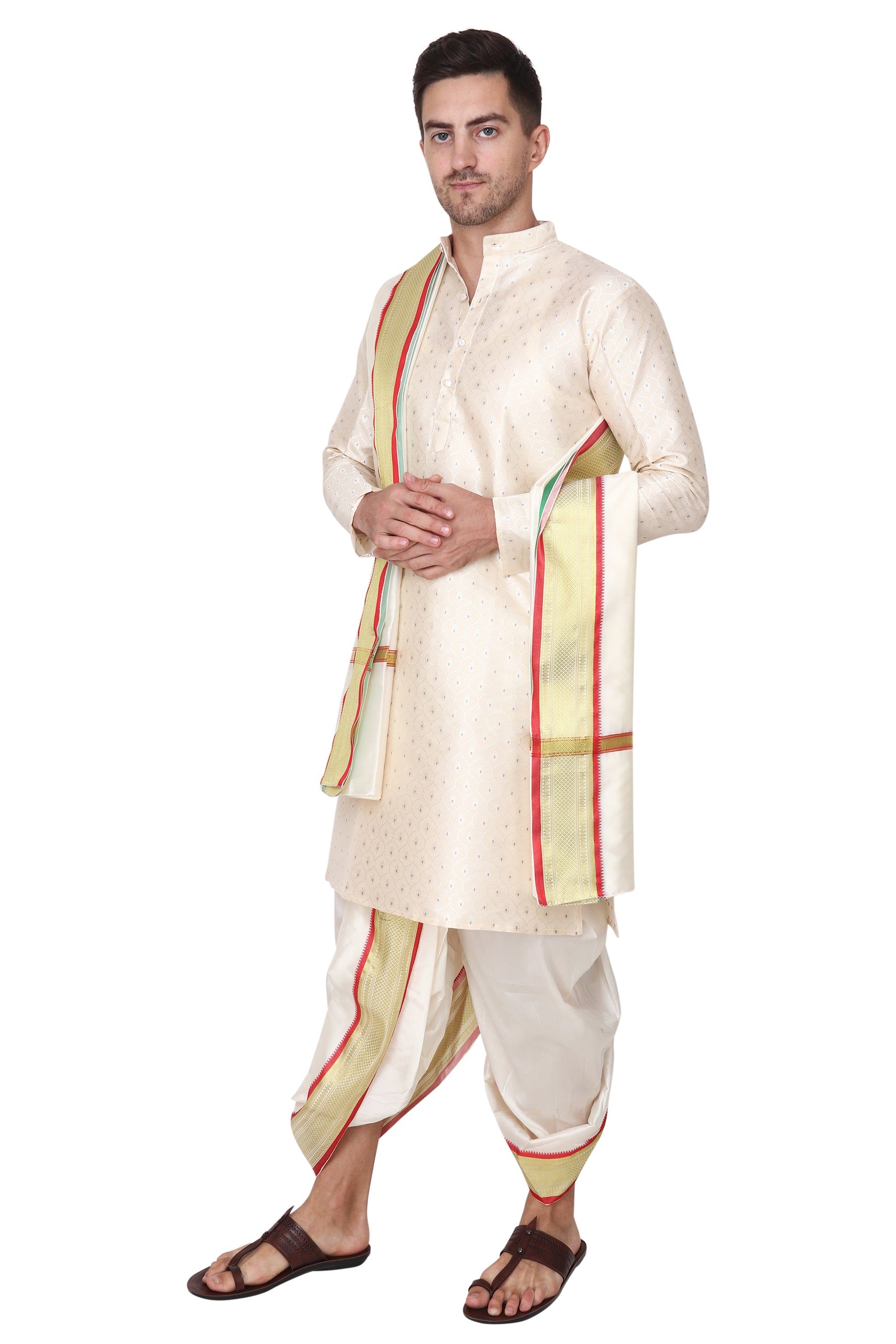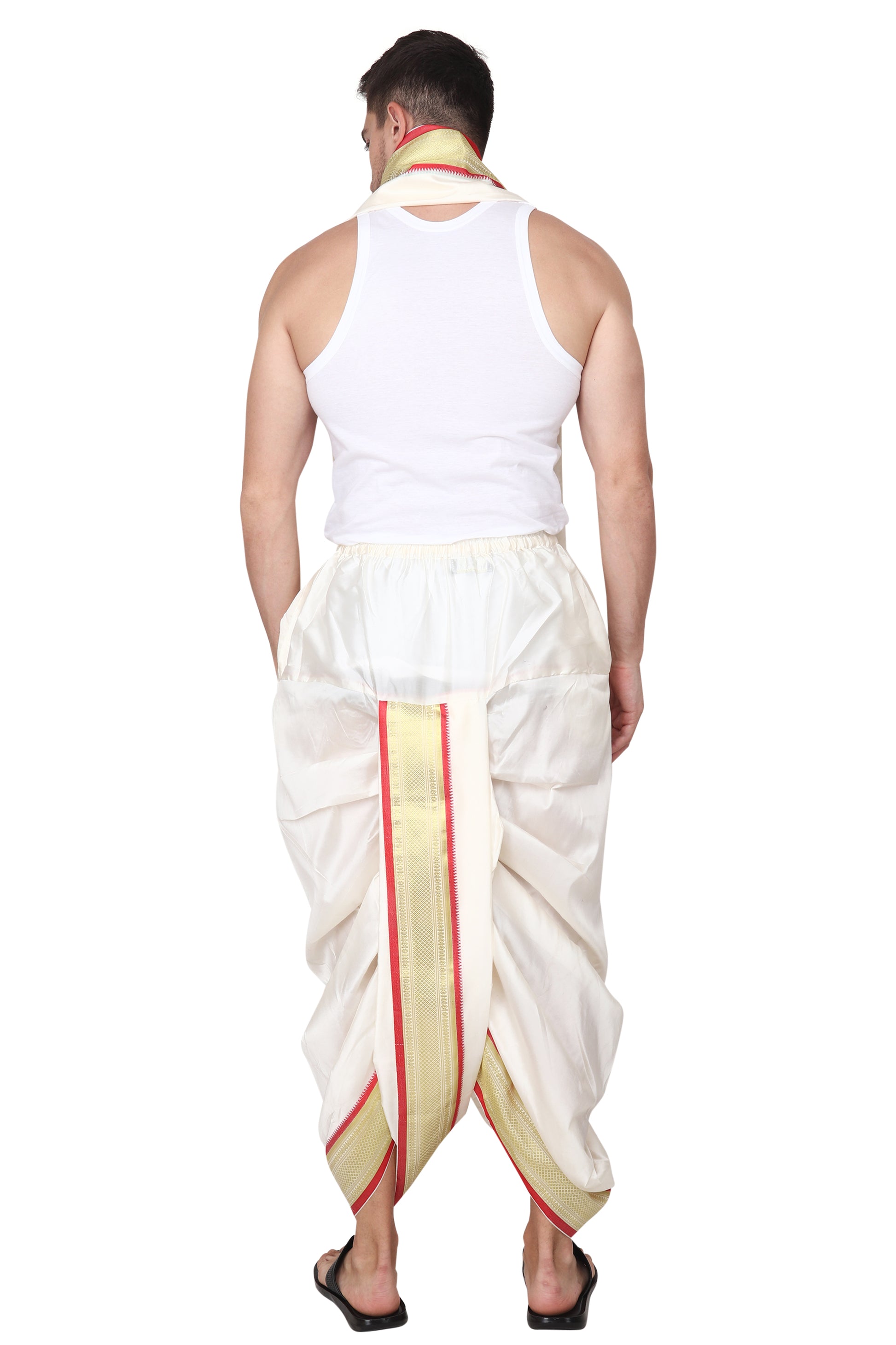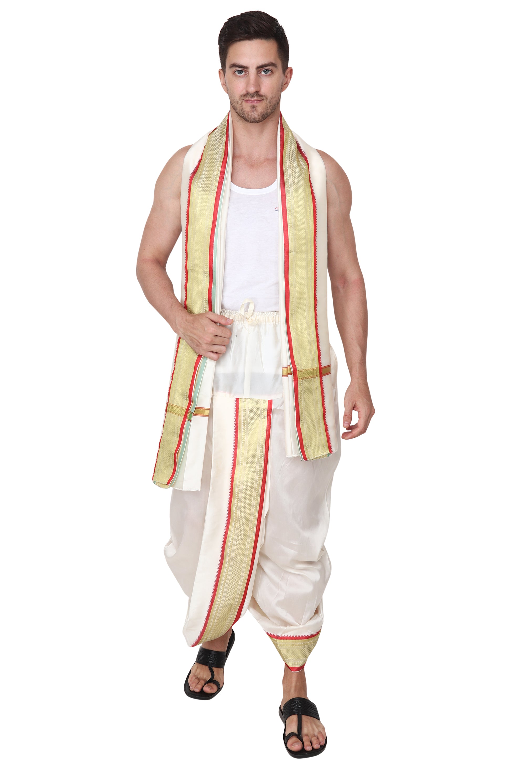 Silk Dhoti for Men - Readymade - Dhoti Angwastra Set