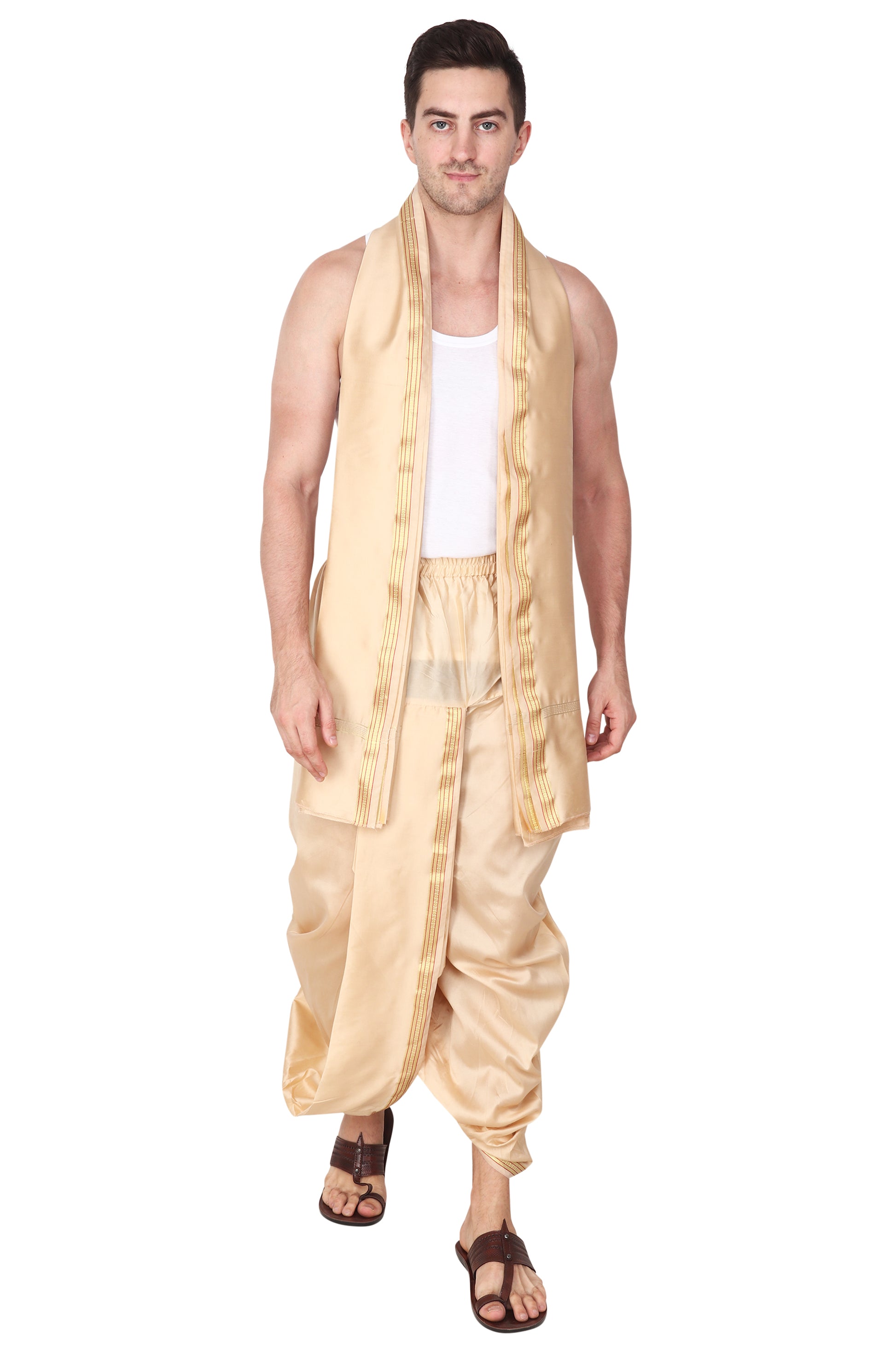 Gold - Sandal - Golden Color , Panjakejam Dhoti set- Readymade Dhotar