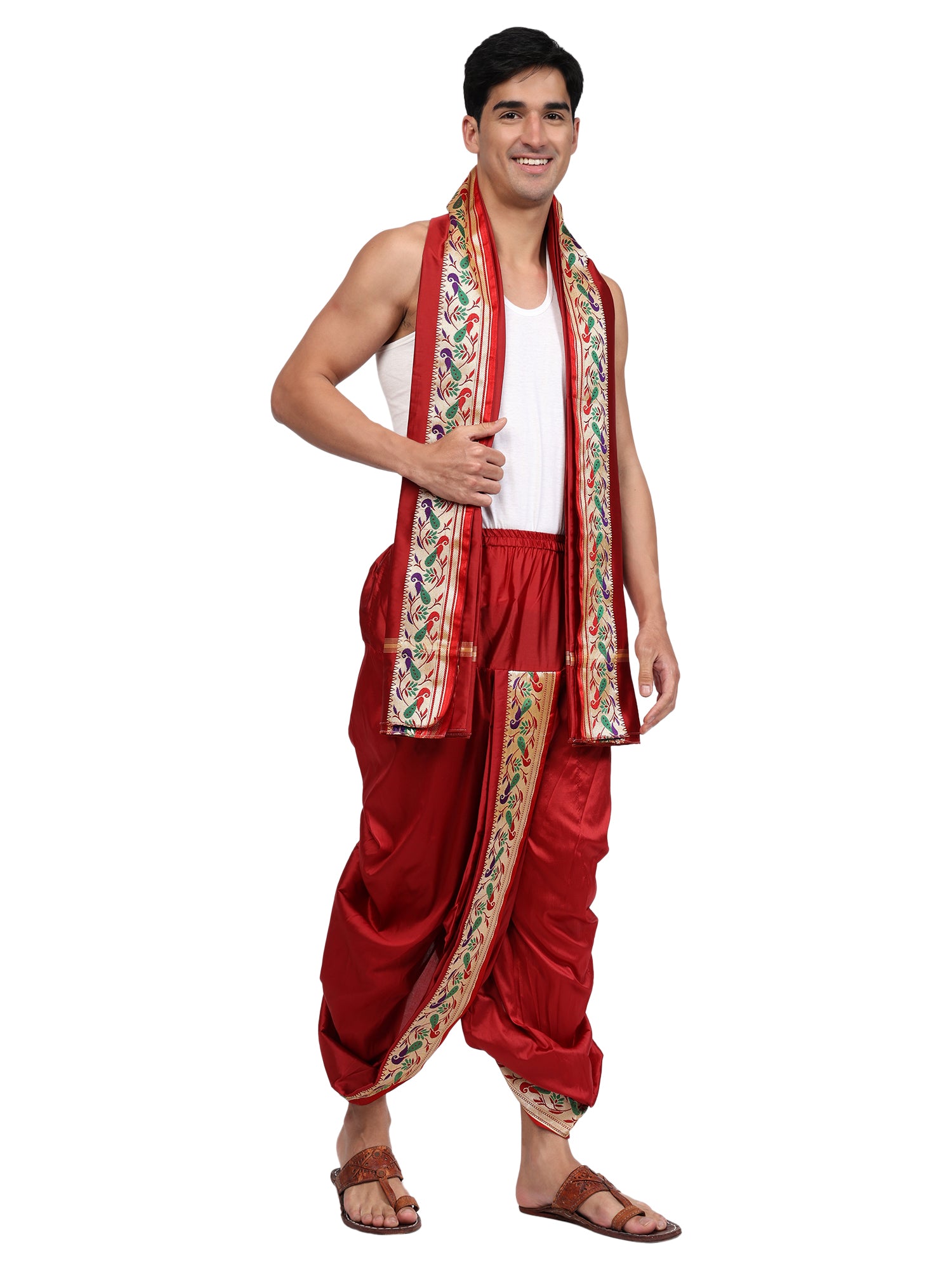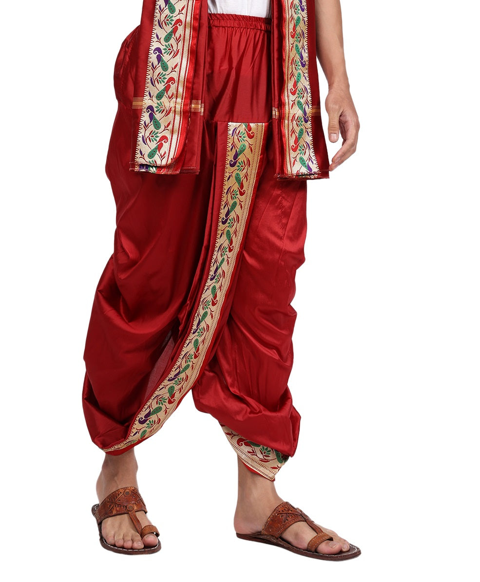 Maroon Silk Dhoti Set - Gent Dhoti Pant