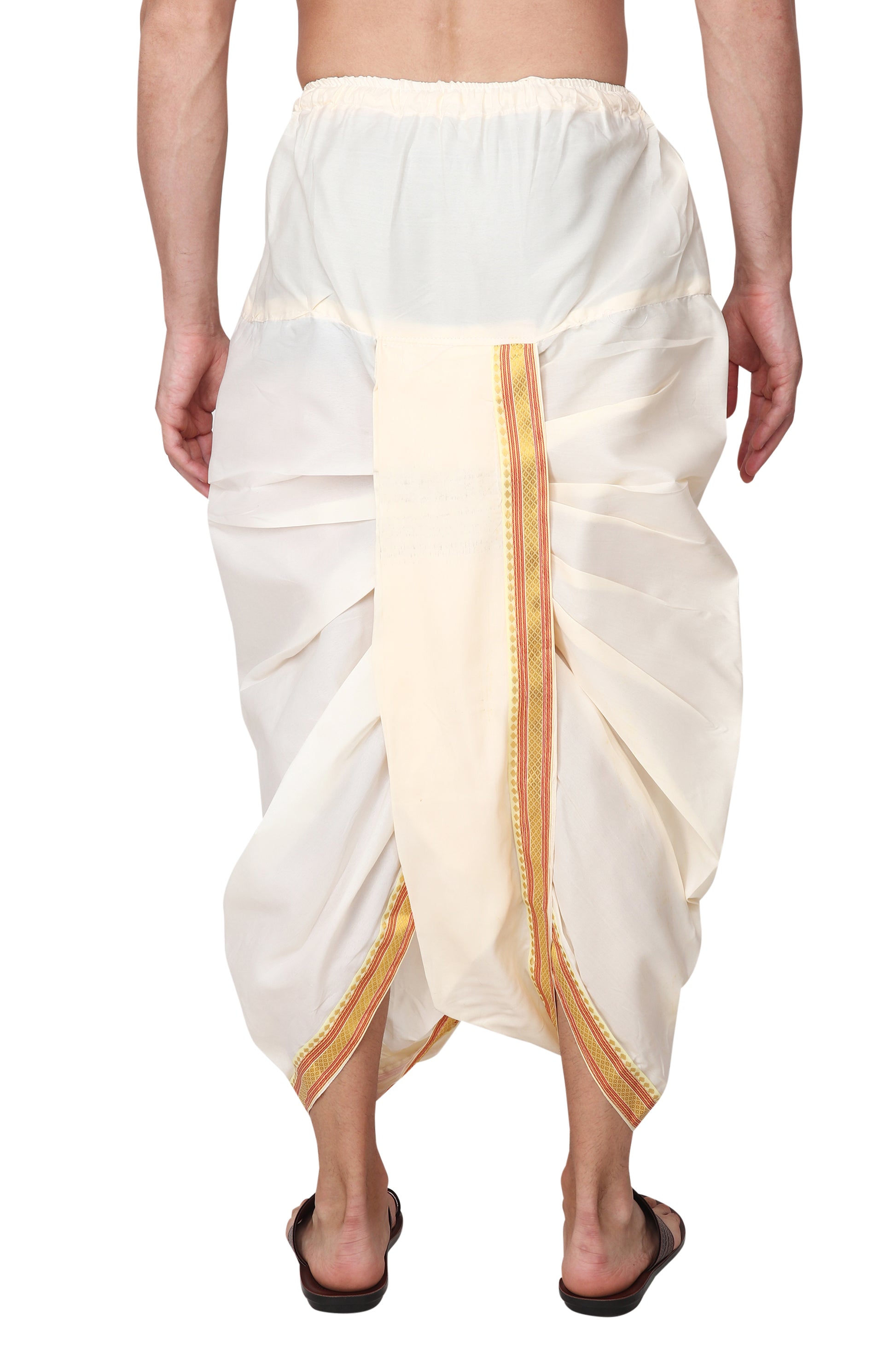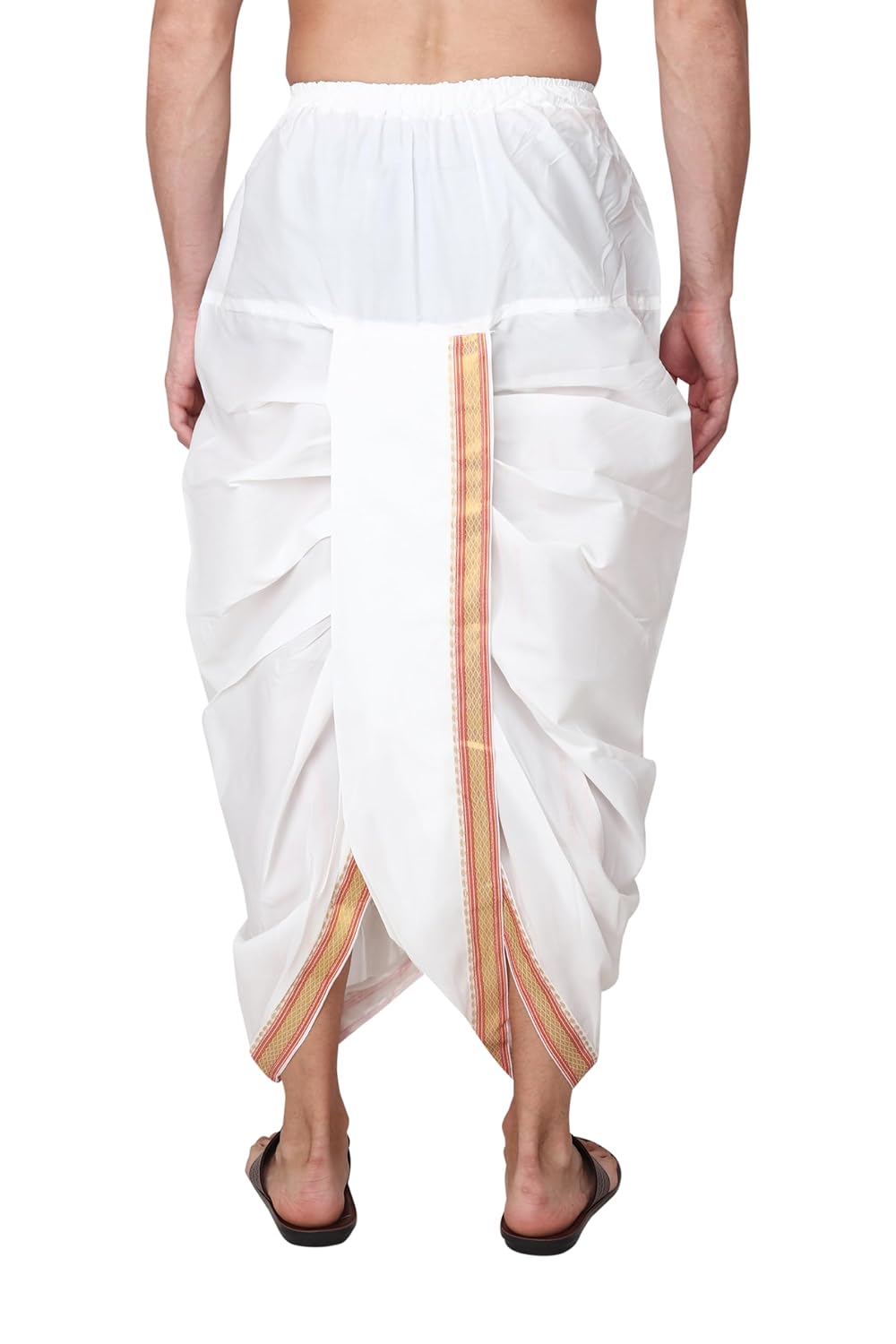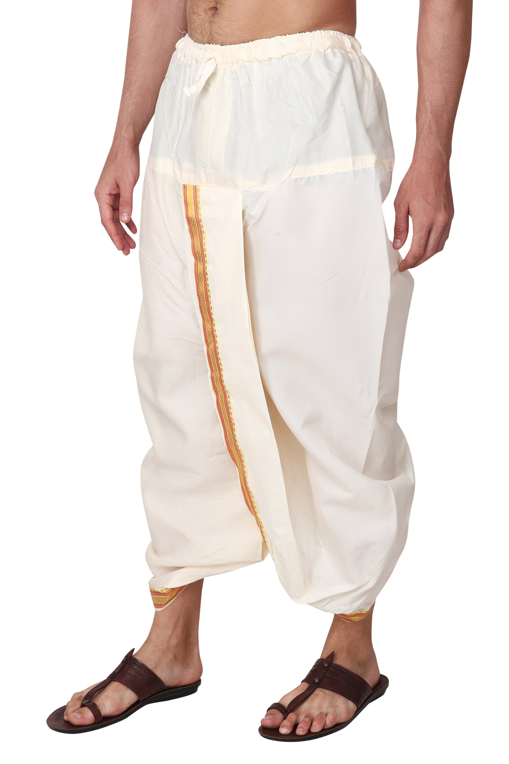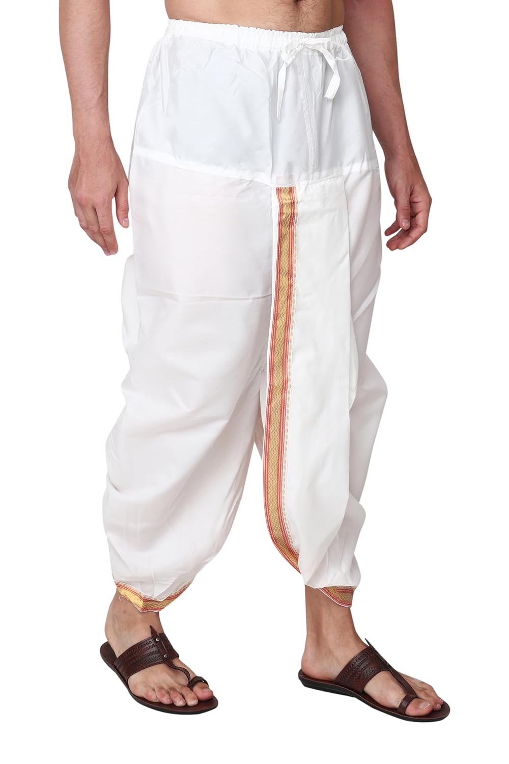 Men's Readymade Elastic Cotton Silk Dhoti for men, Free Size (Ready-to-wear-Dhoti)