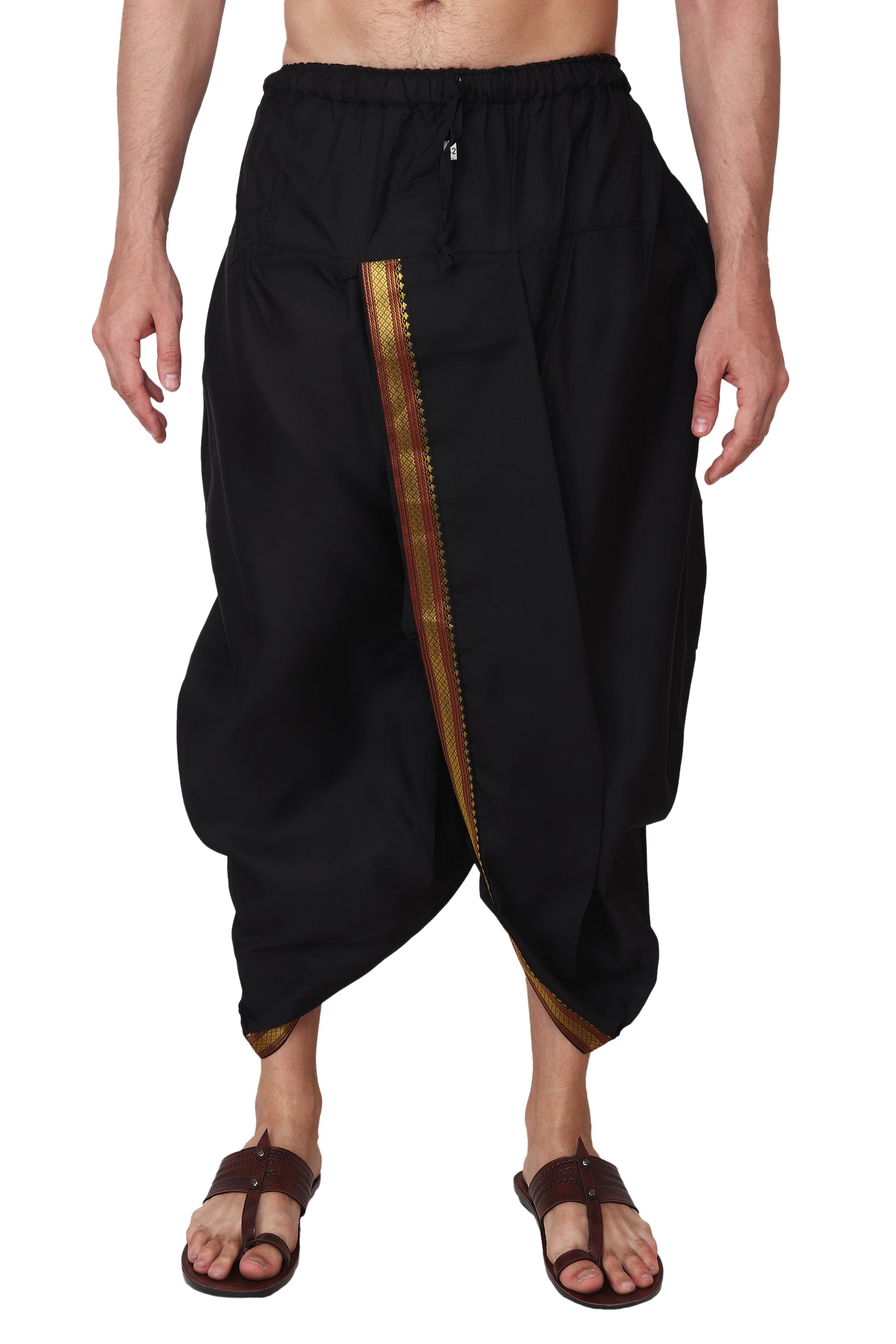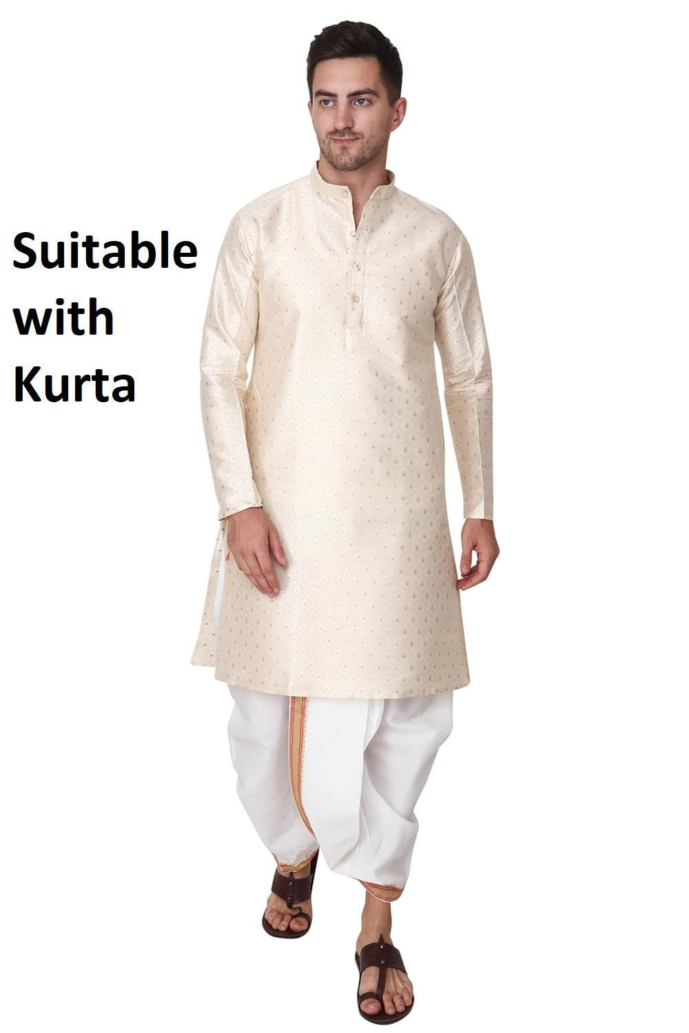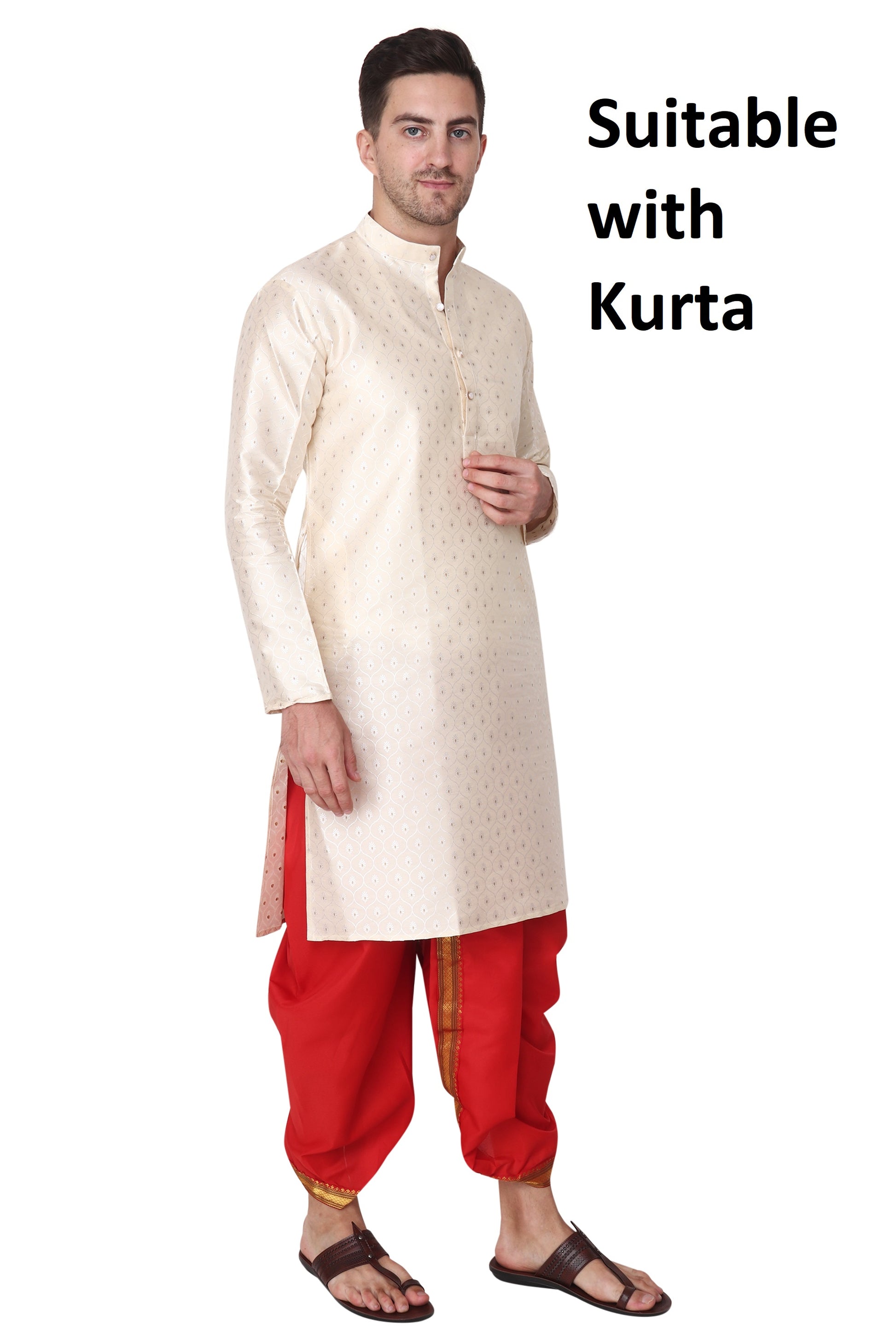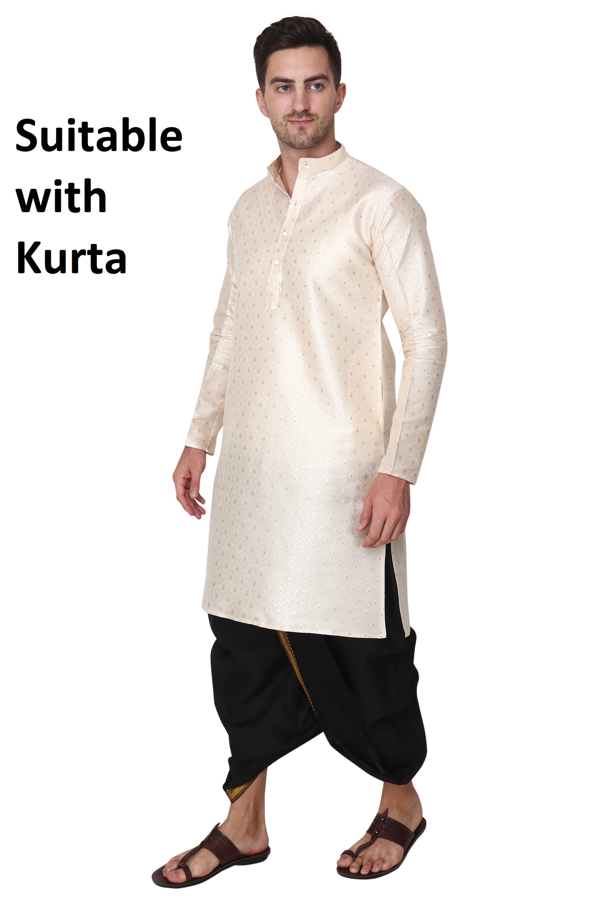 Men's Readymade Elastic Cotton Silk Dhoti for men, Free Size (Ready-to-wear-Dhoti)