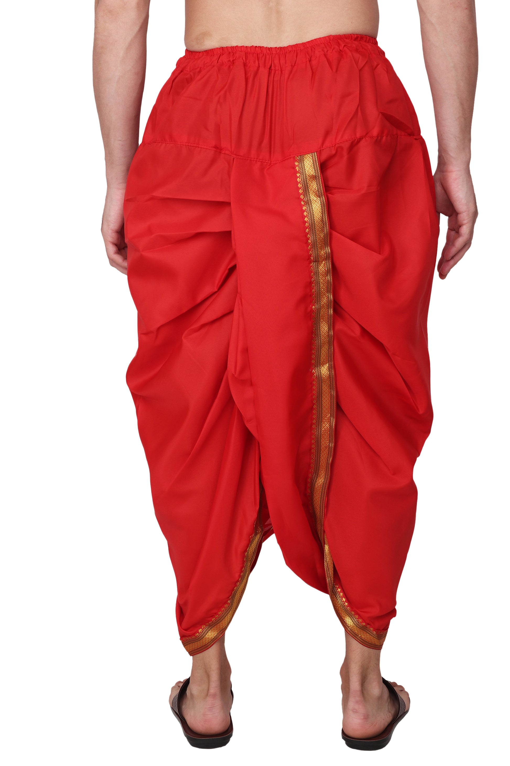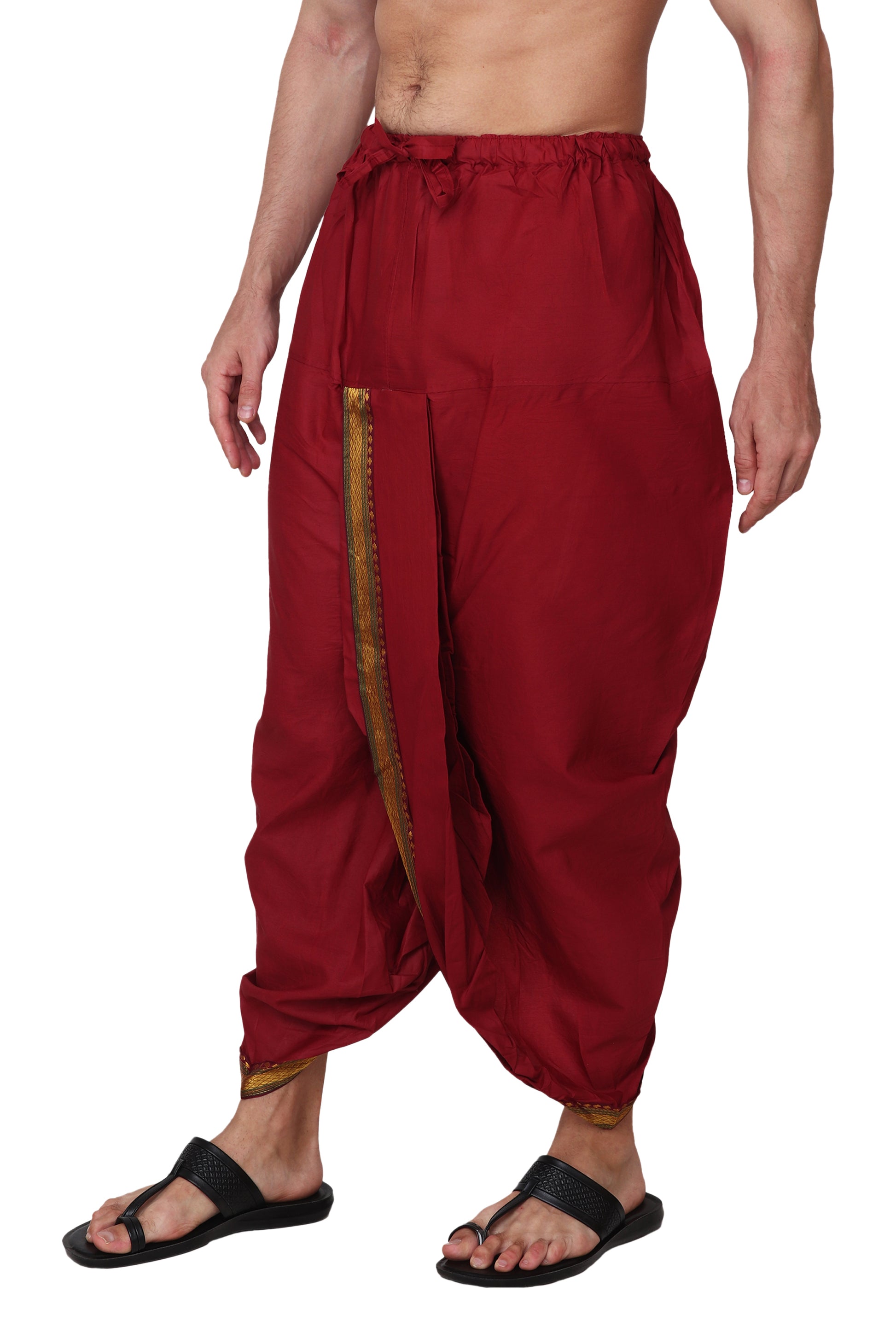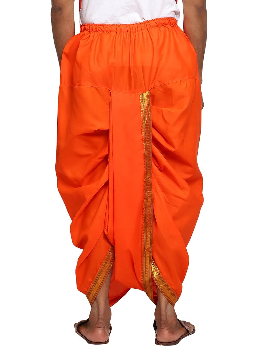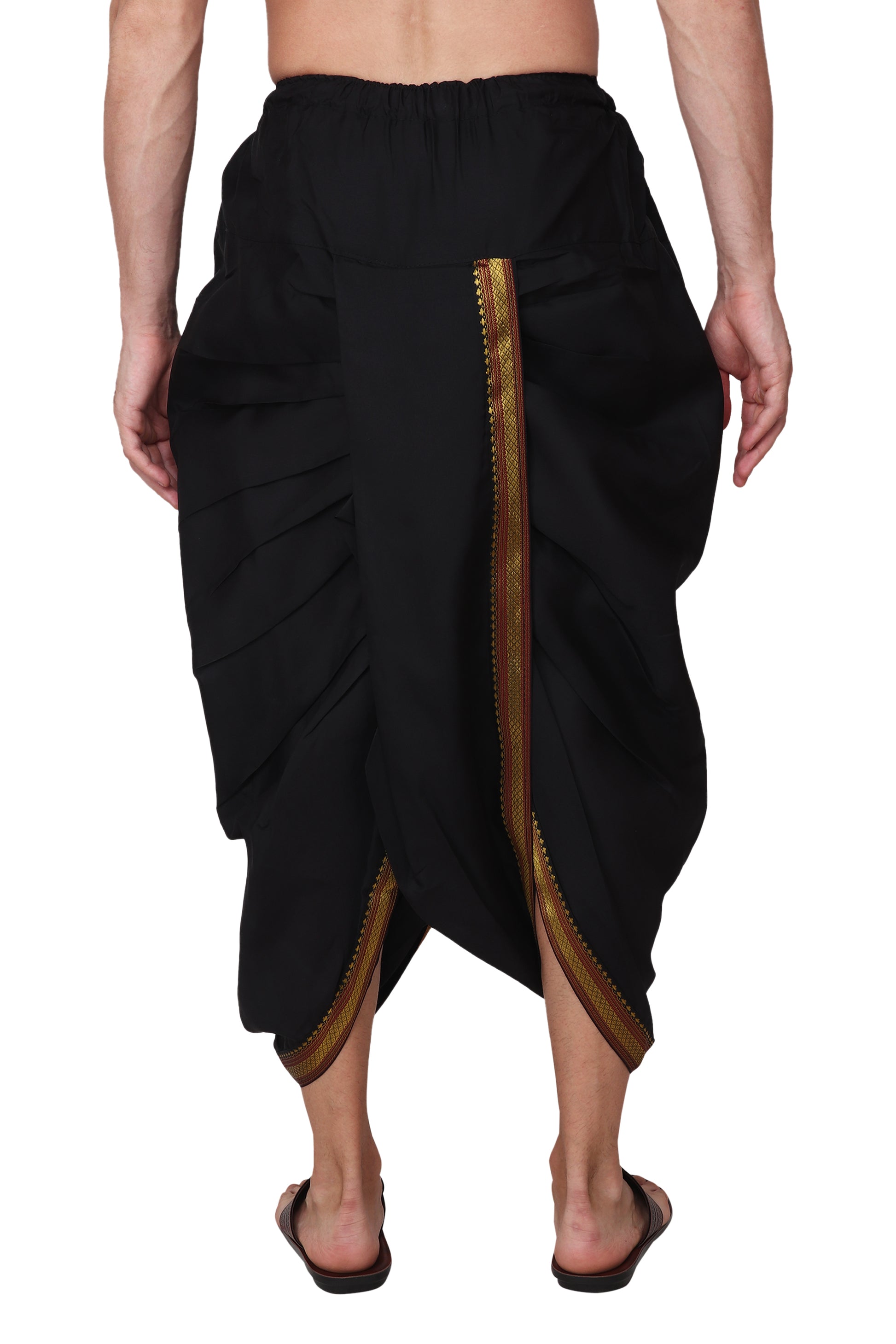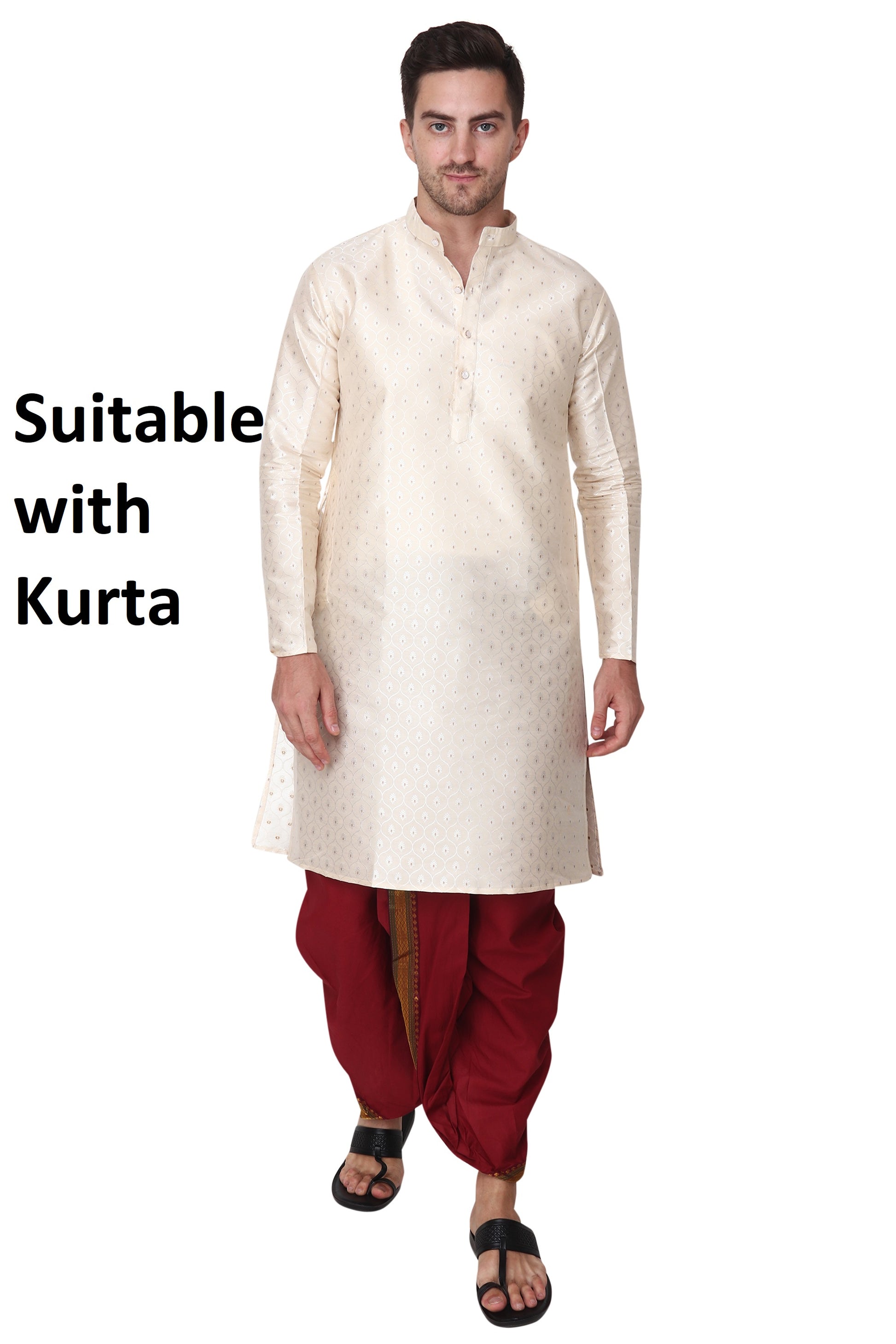 Men's Readymade Elastic Cotton Silk Dhoti for men, Free Size (Ready-to-wear-Dhoti)