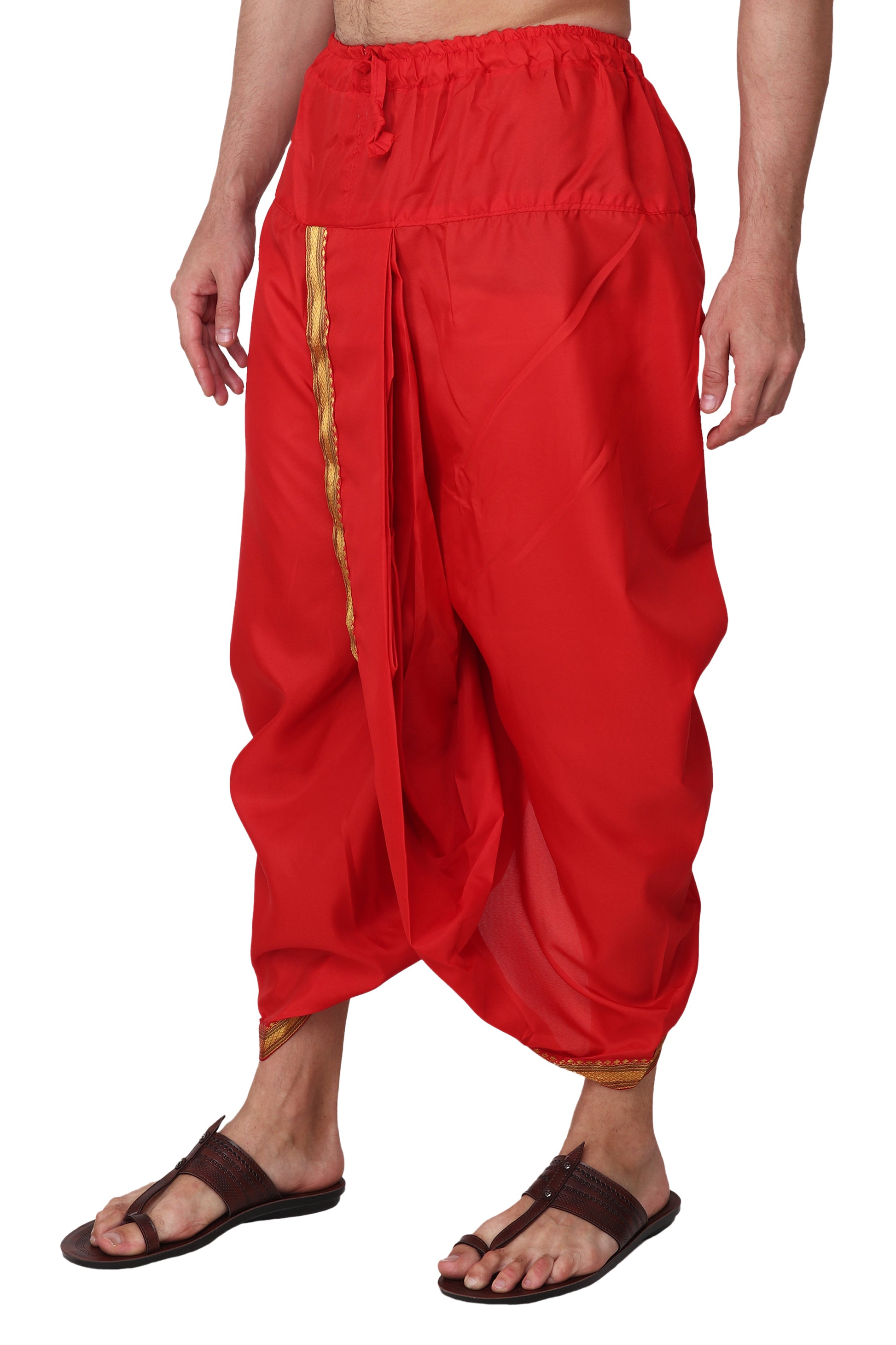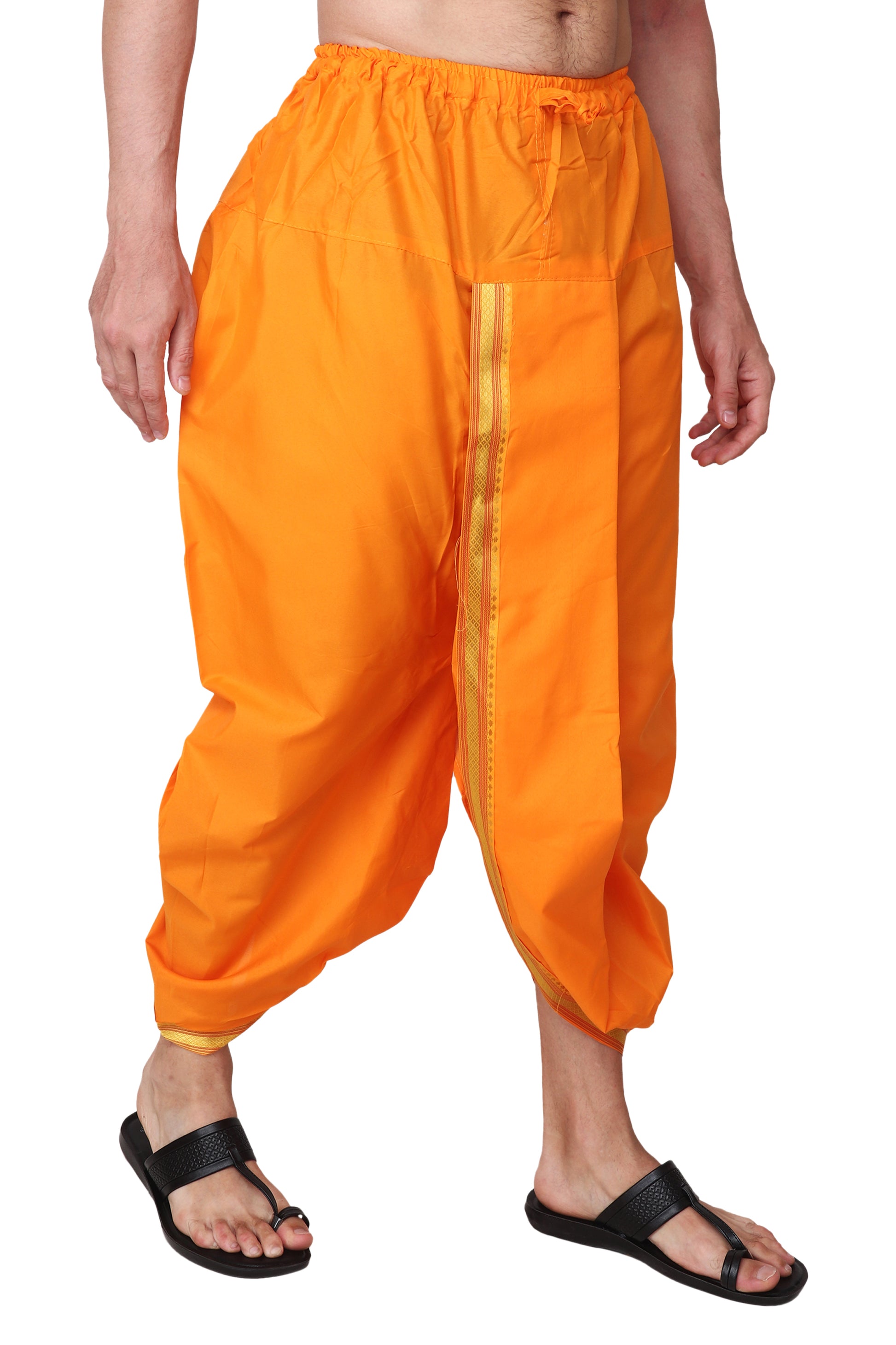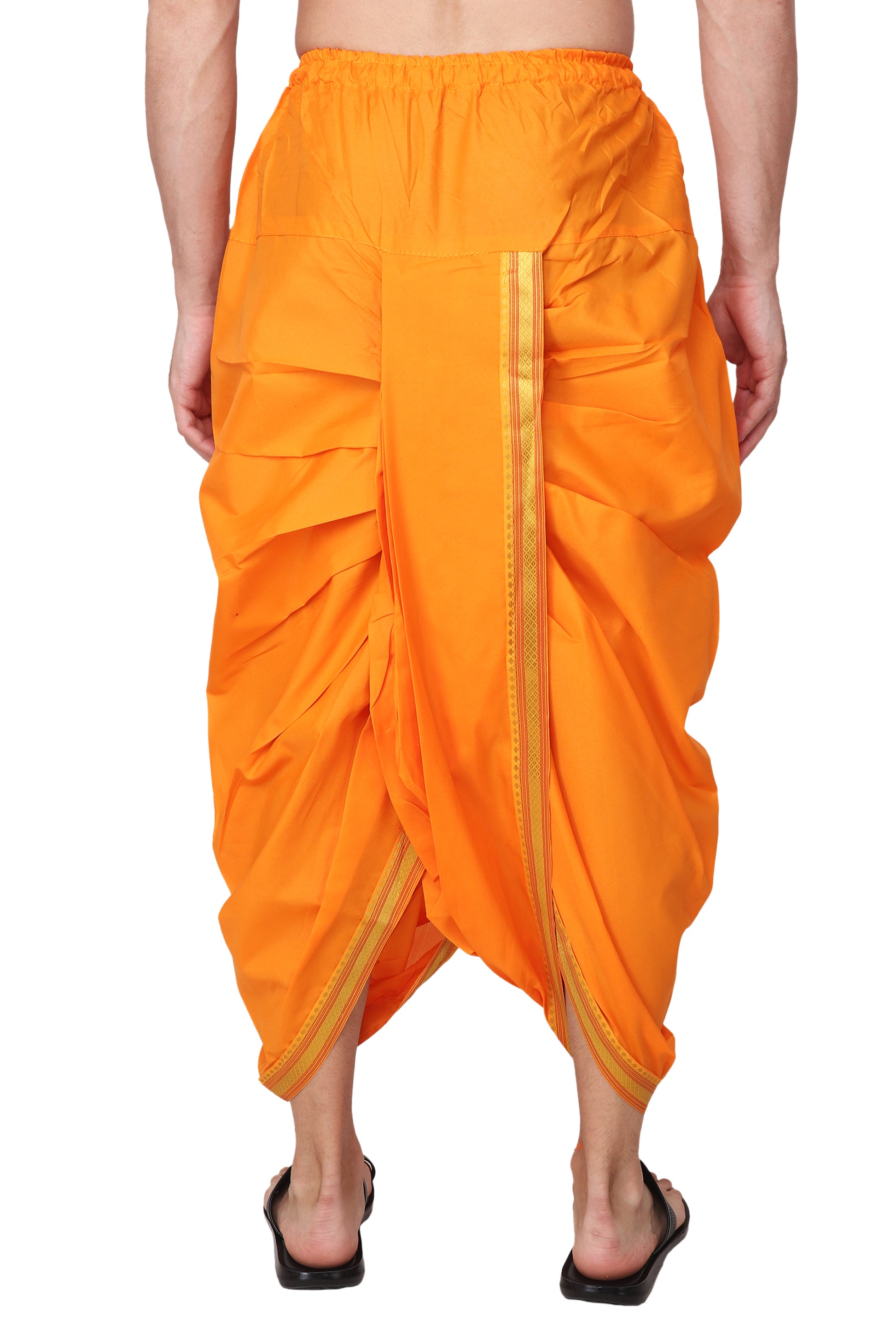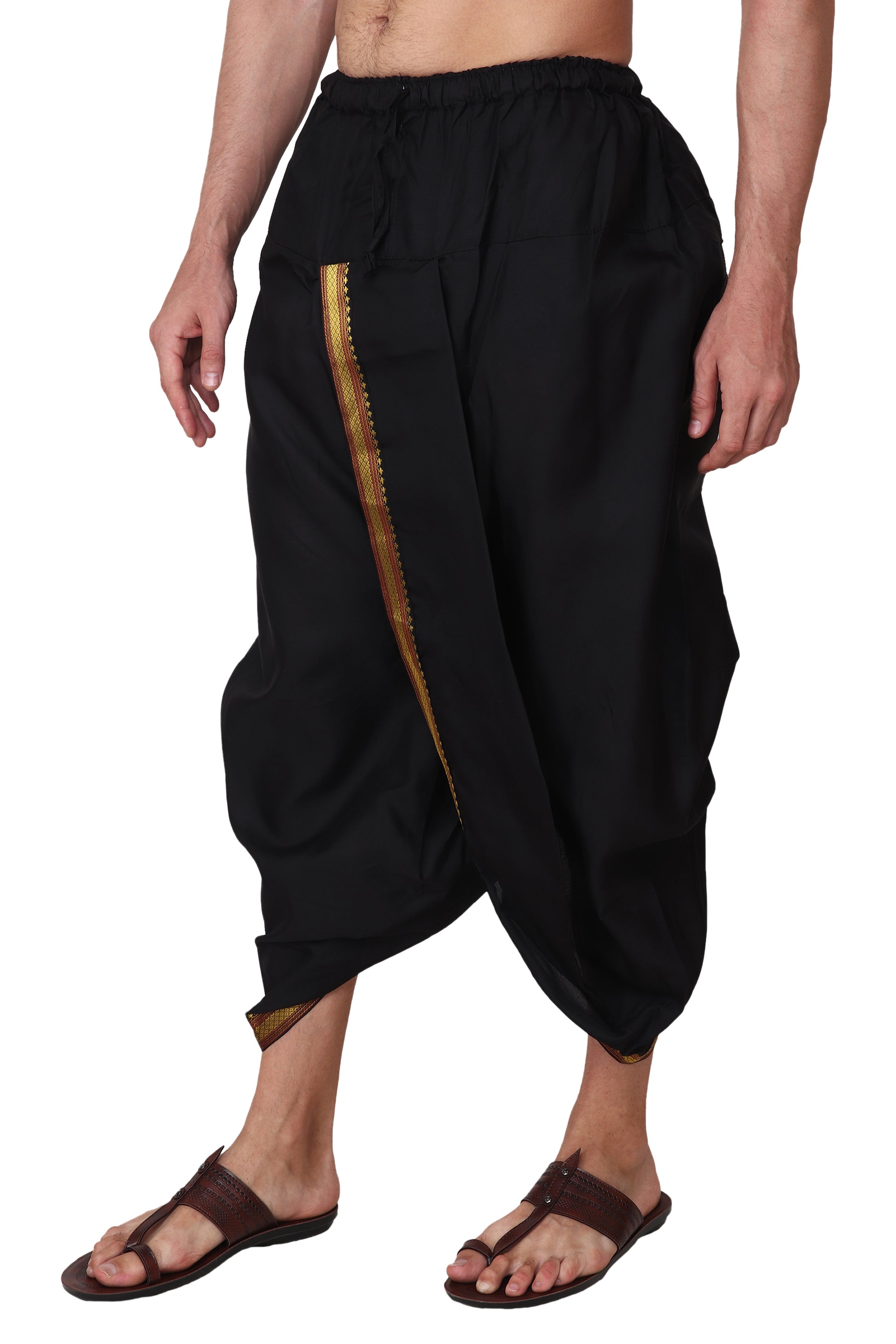 Men's Readymade Elastic Cotton Silk Dhoti for men, Free Size (Ready-to-wear-Dhoti)
