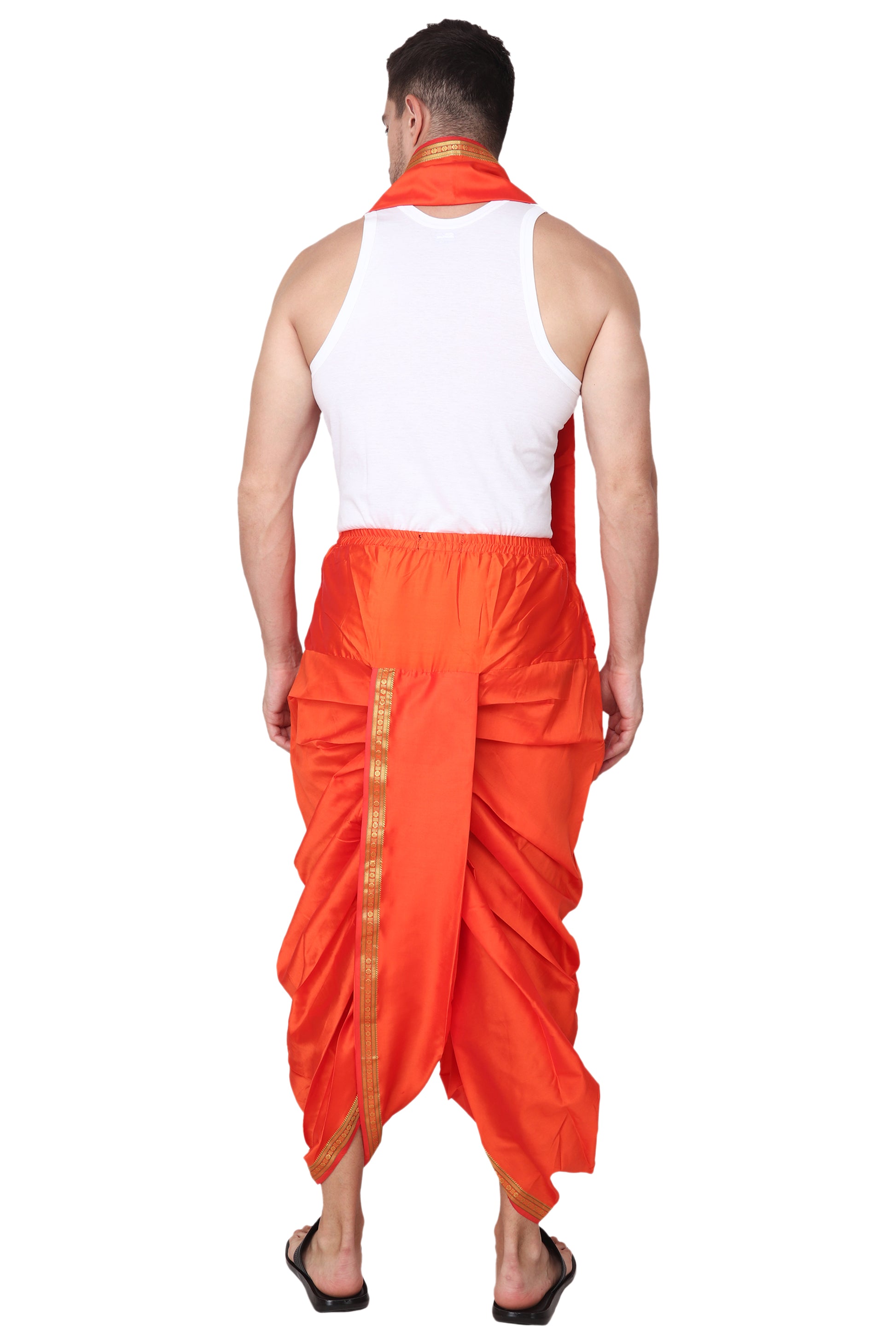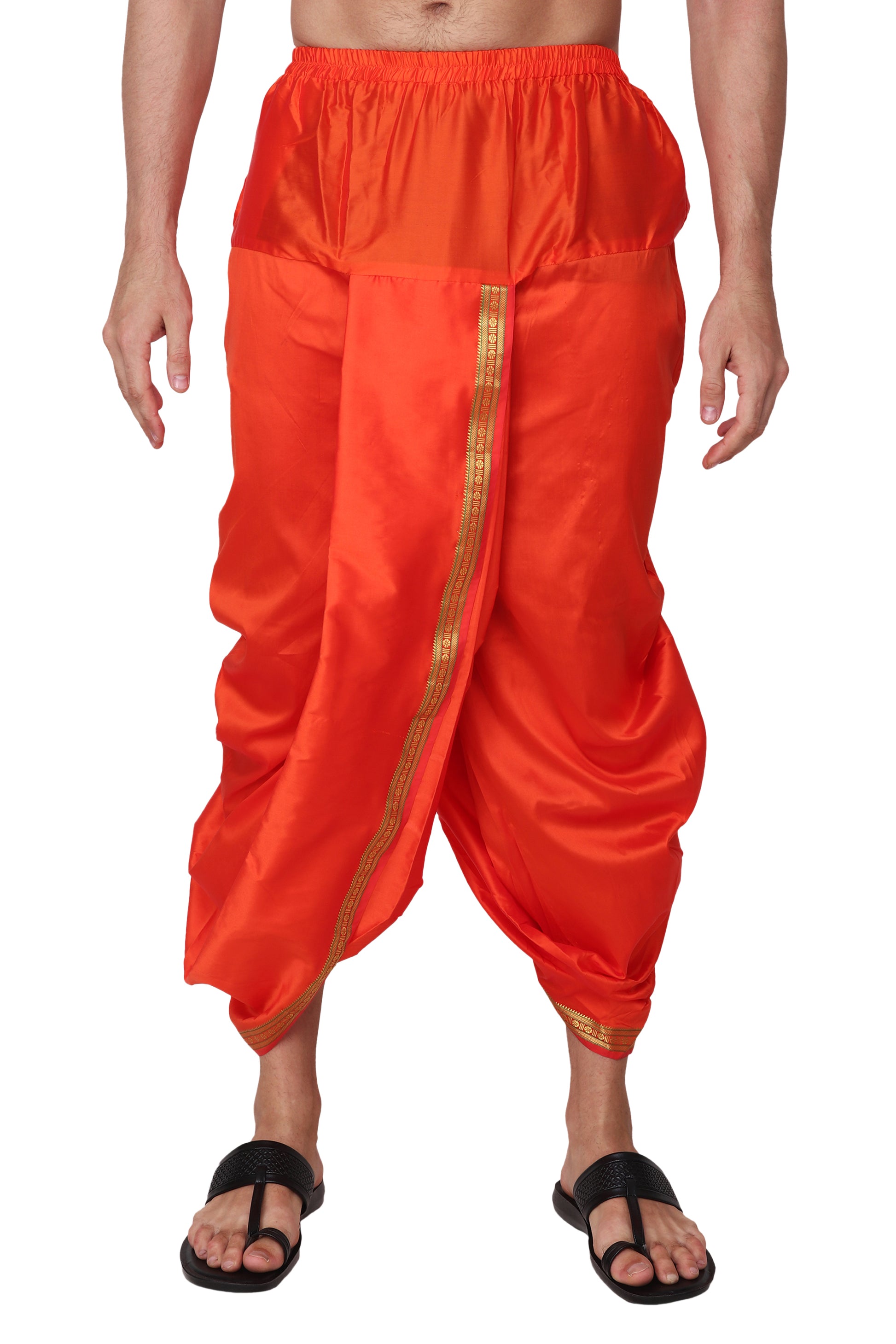 Orange - Bhagwa - Saffron - Dhoti Pant for Men with Angwastra