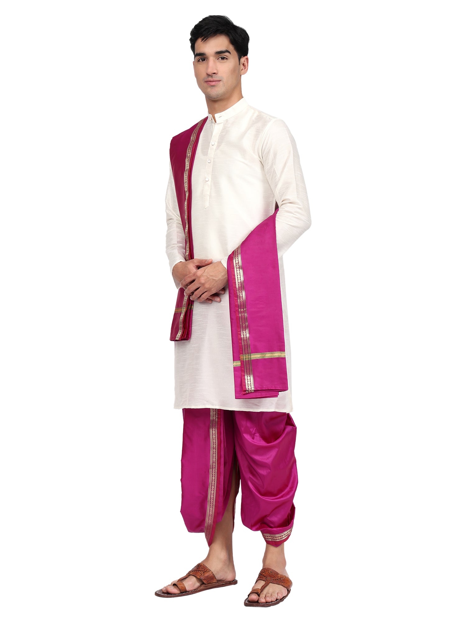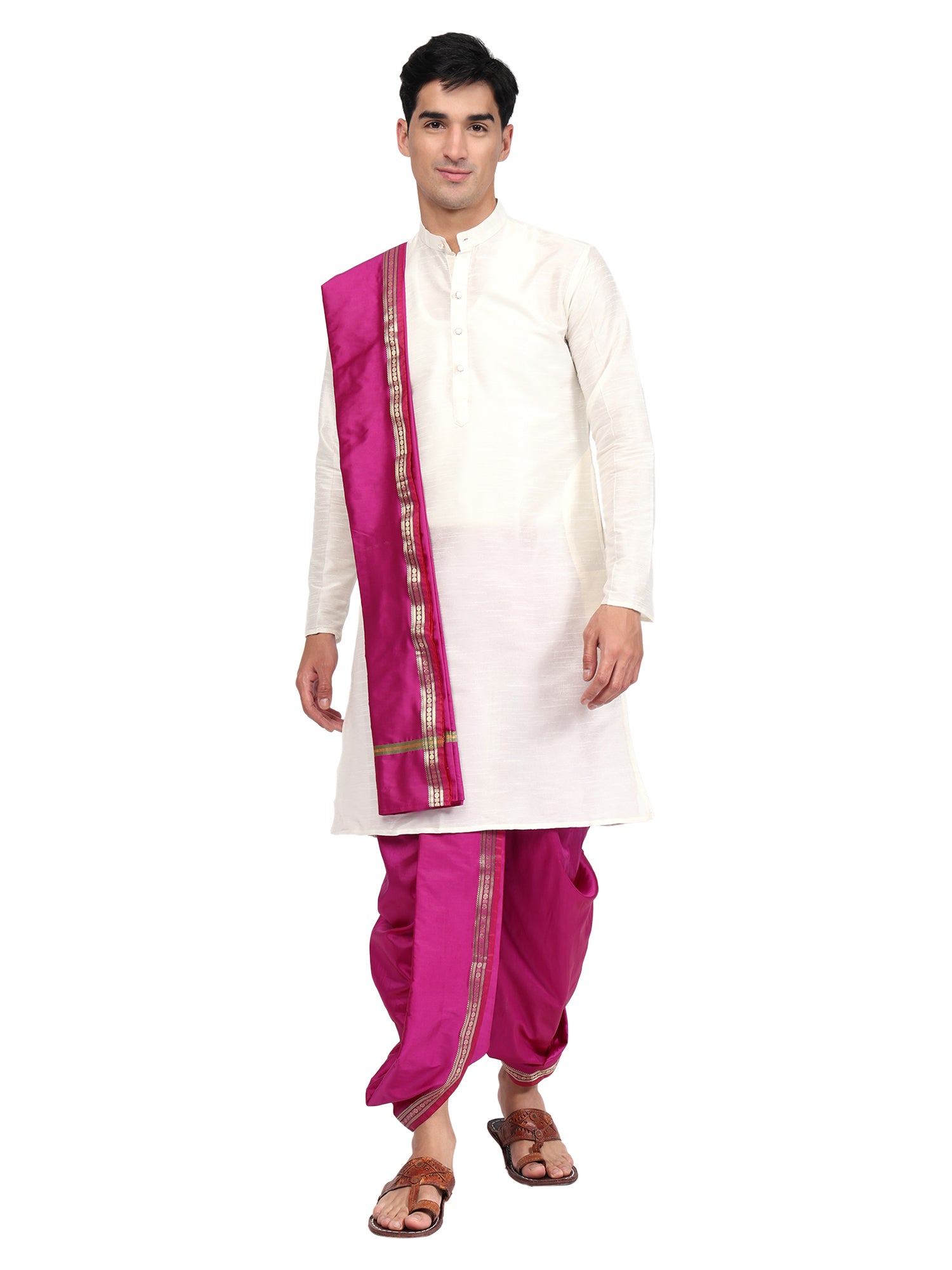 Readymade Dhoti Pant for Men with Silk Kurta and Stole Stole, Colourfull Dhoti Kurta Set