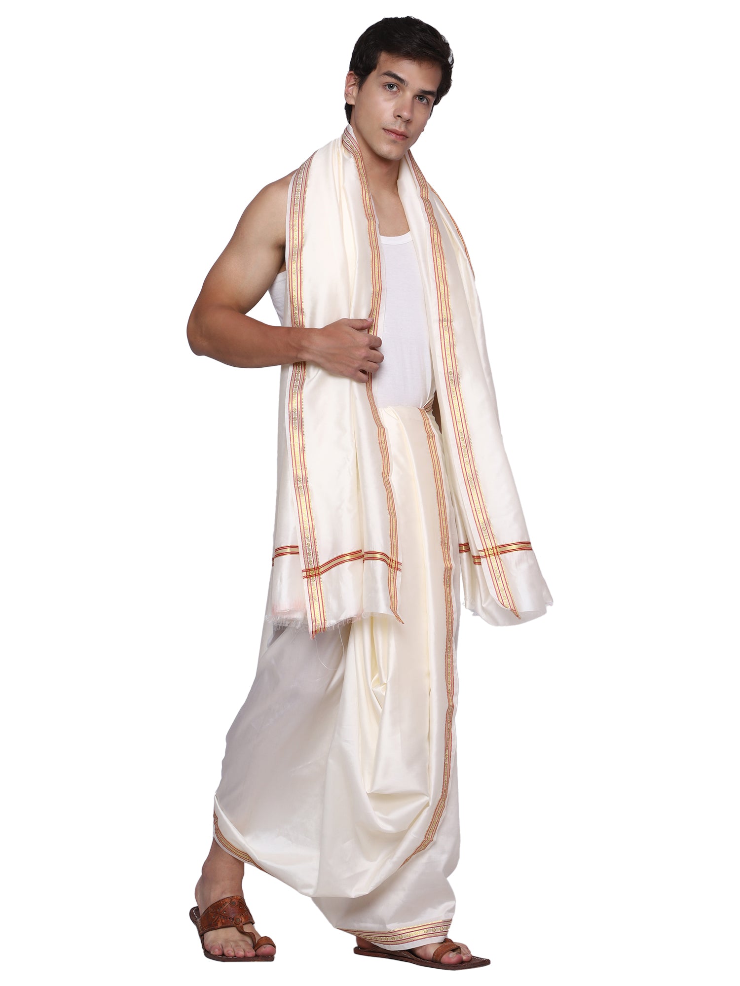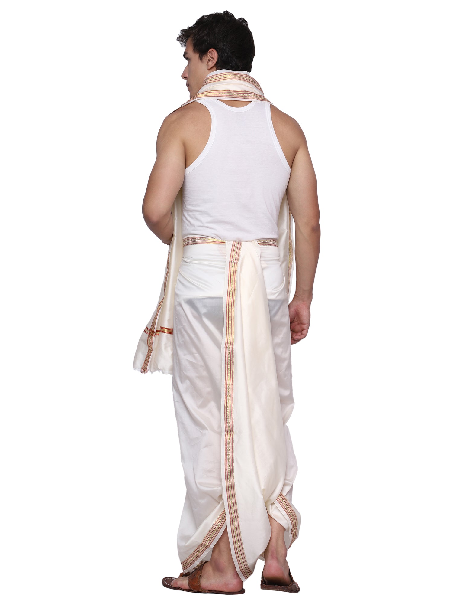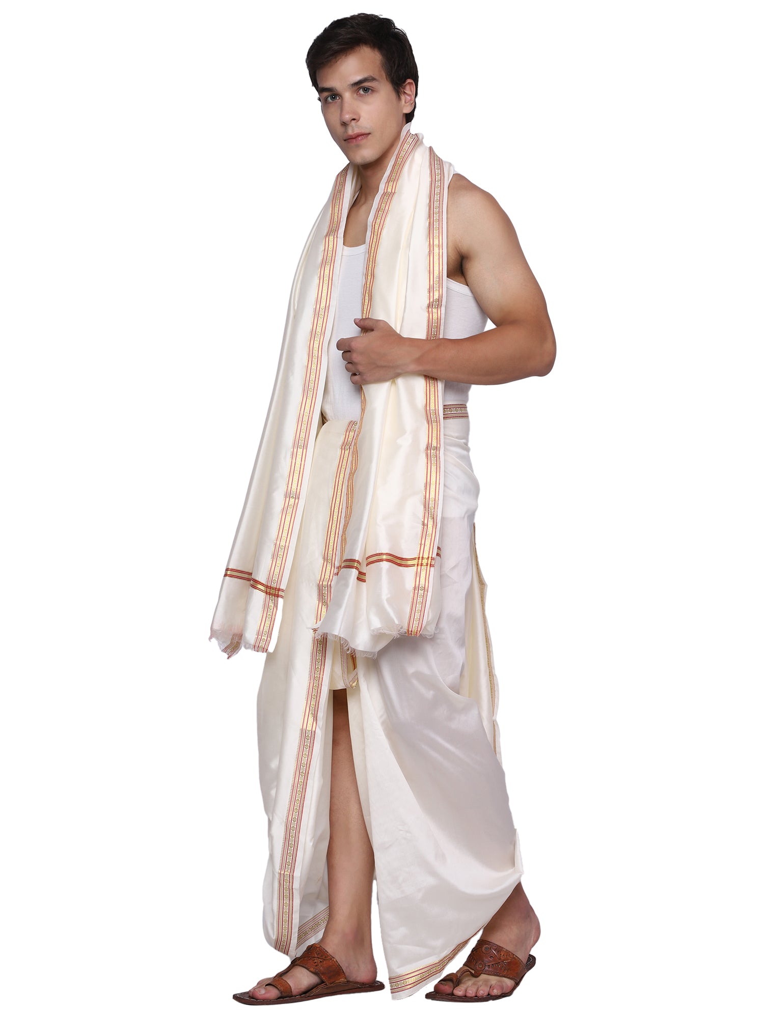 Unstitched Silk Dhoti with Stole Set - 4.25 Mtr Dhoti and 2.25 Mtr Angwastra