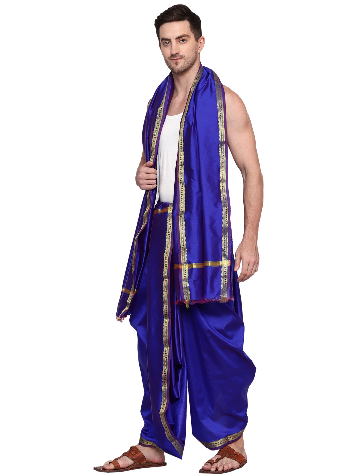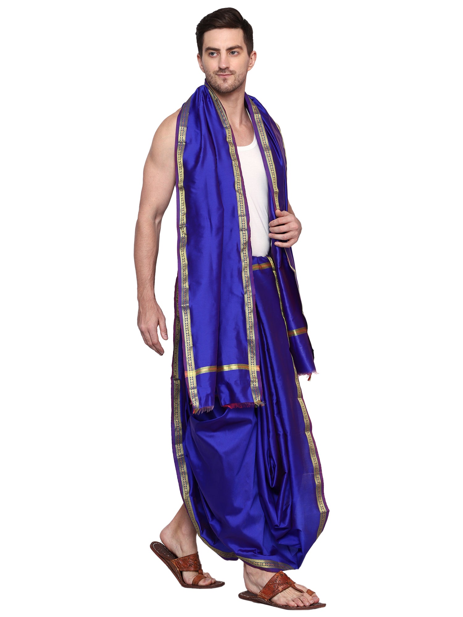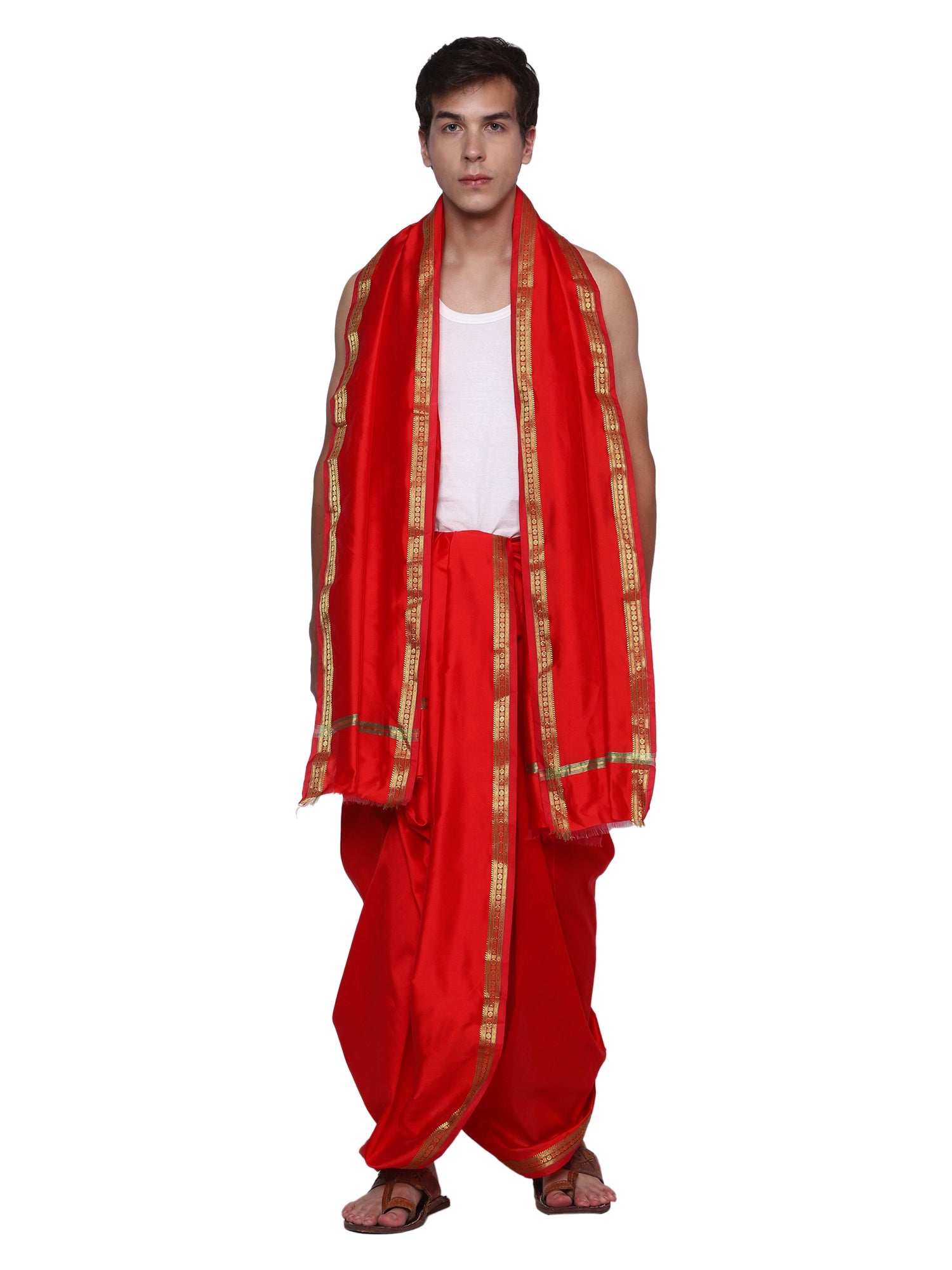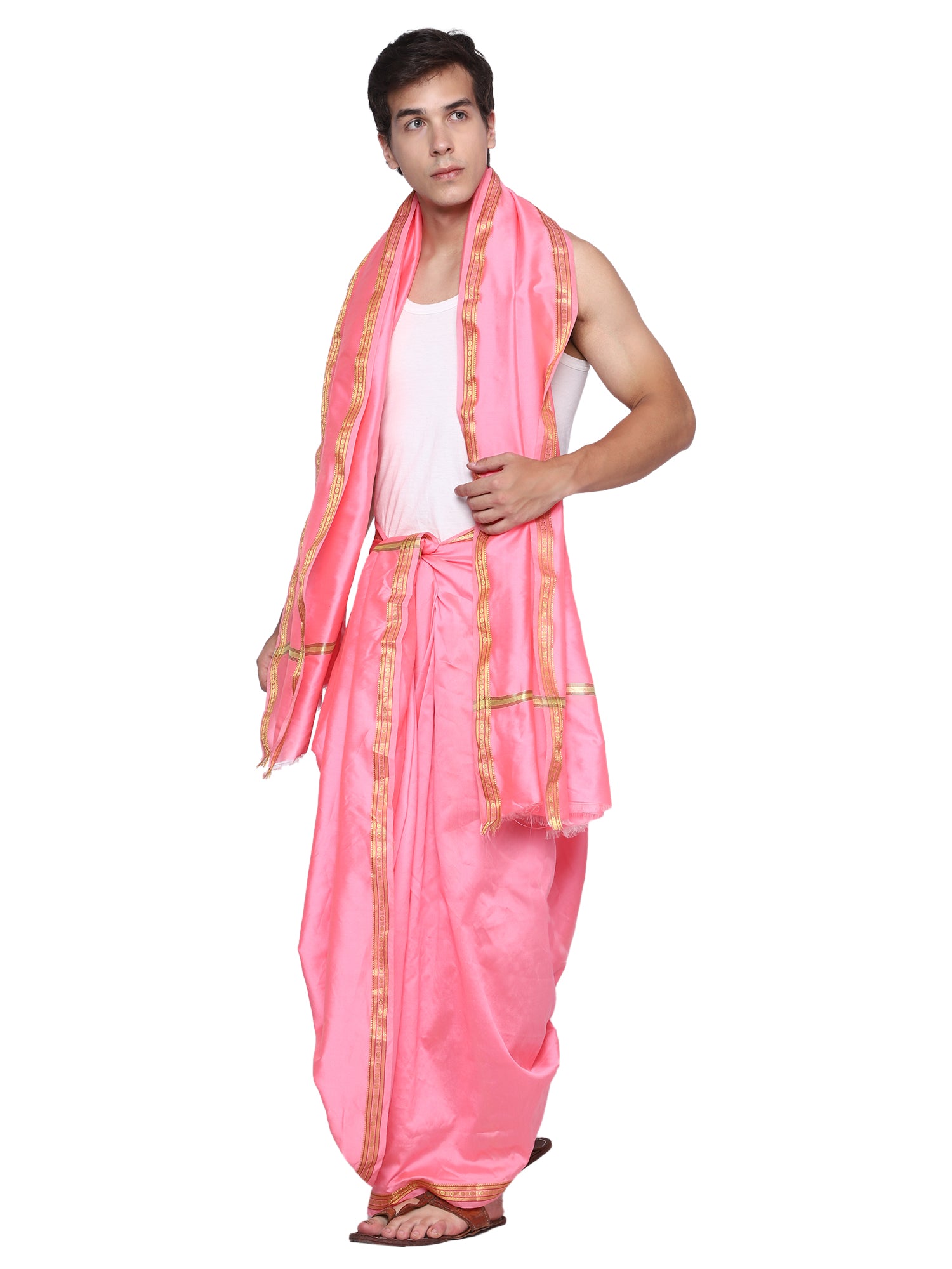 Unstitched Silk Dhoti with Stole Set - 4.25 Mtr Dhoti and 2.25 Mtr Angwastra
