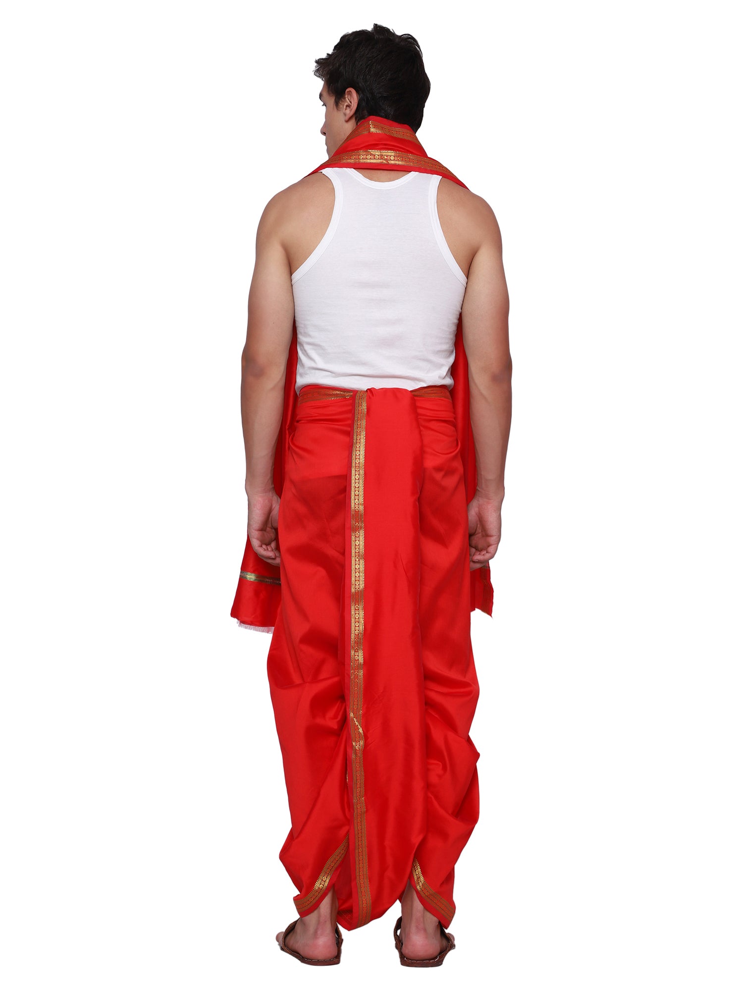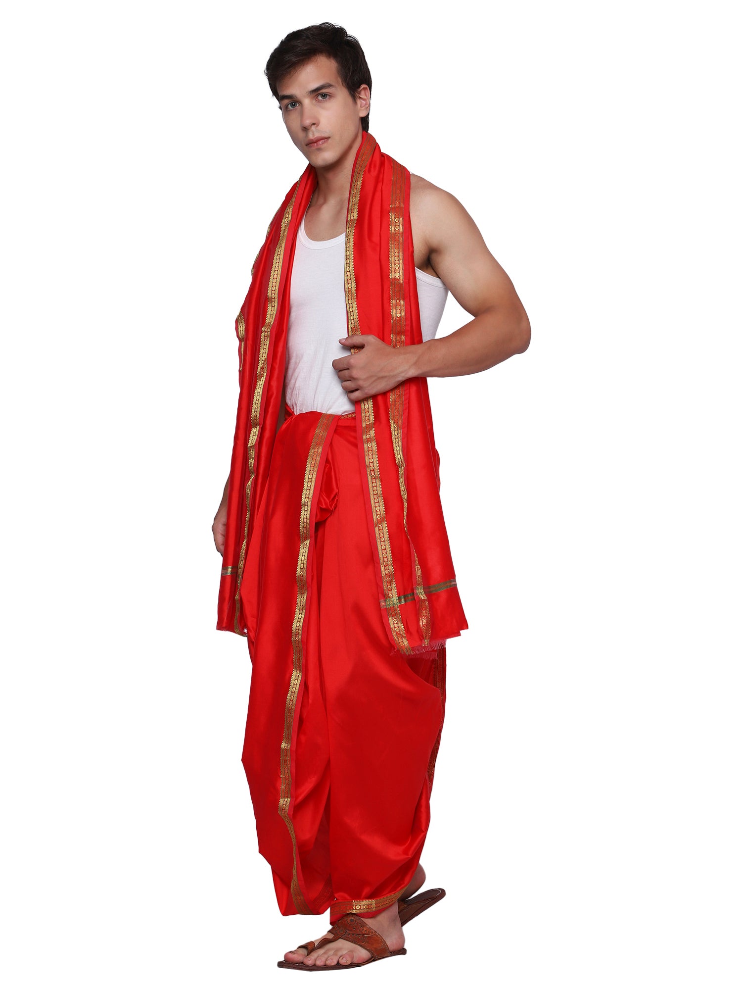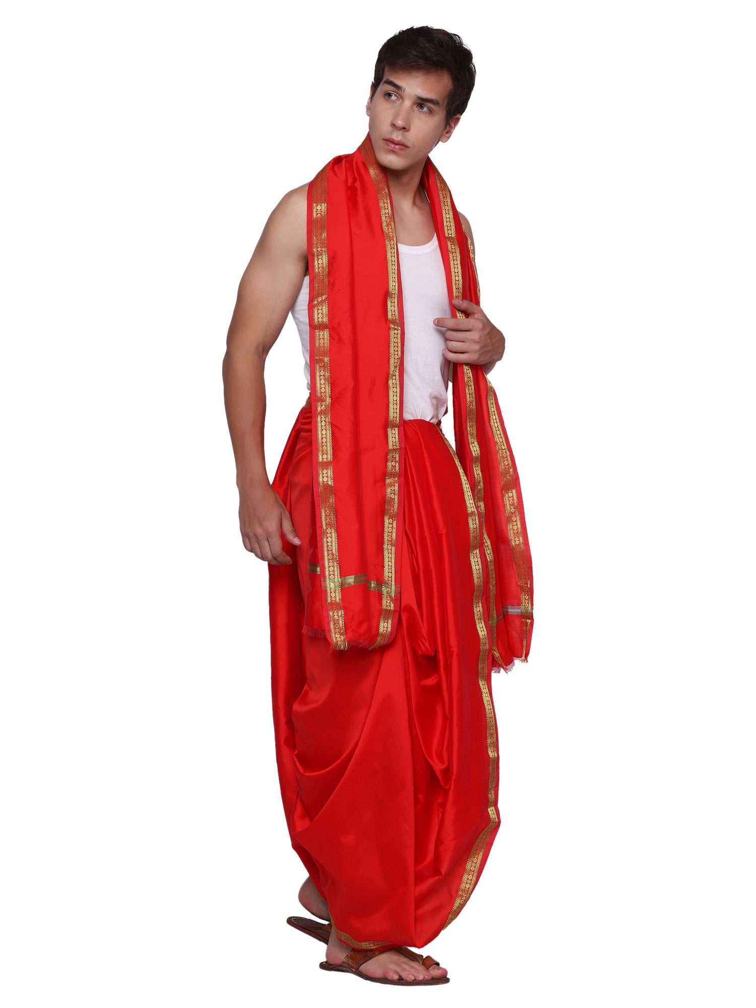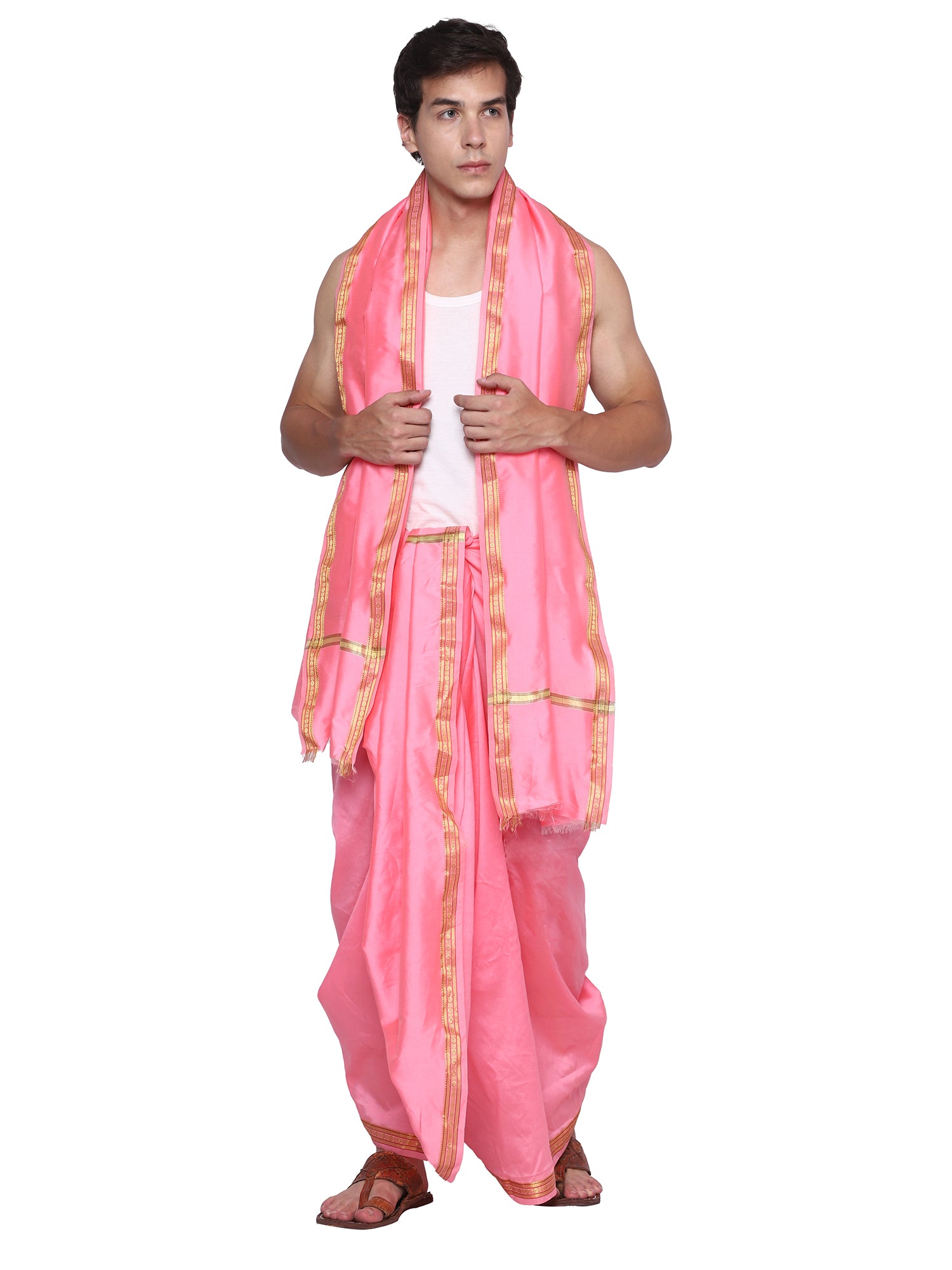 - 9-5 Silk Dhoti Set - Unstitched - Ideal for Puja, Tample, Festival