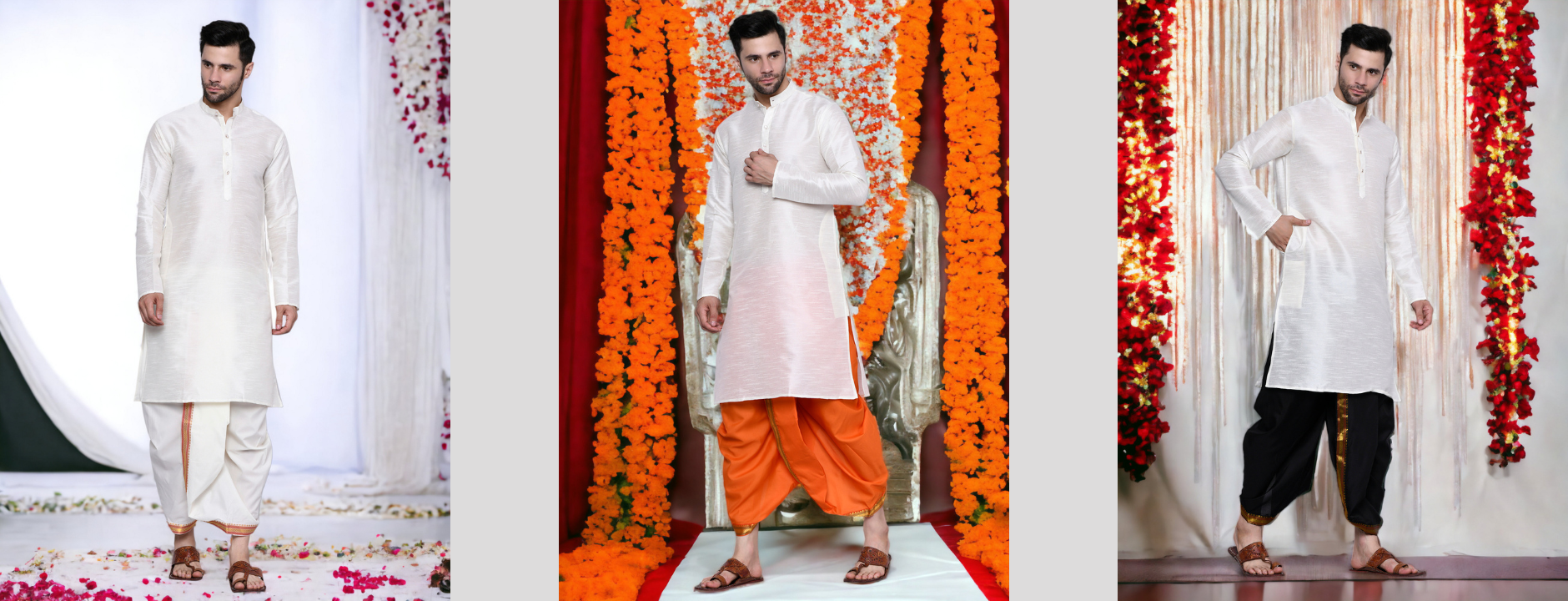 Readymade Dhoti Pant for Men with Silk Kurta and Stole Stole, Colourfull Dhoti Kurta Set