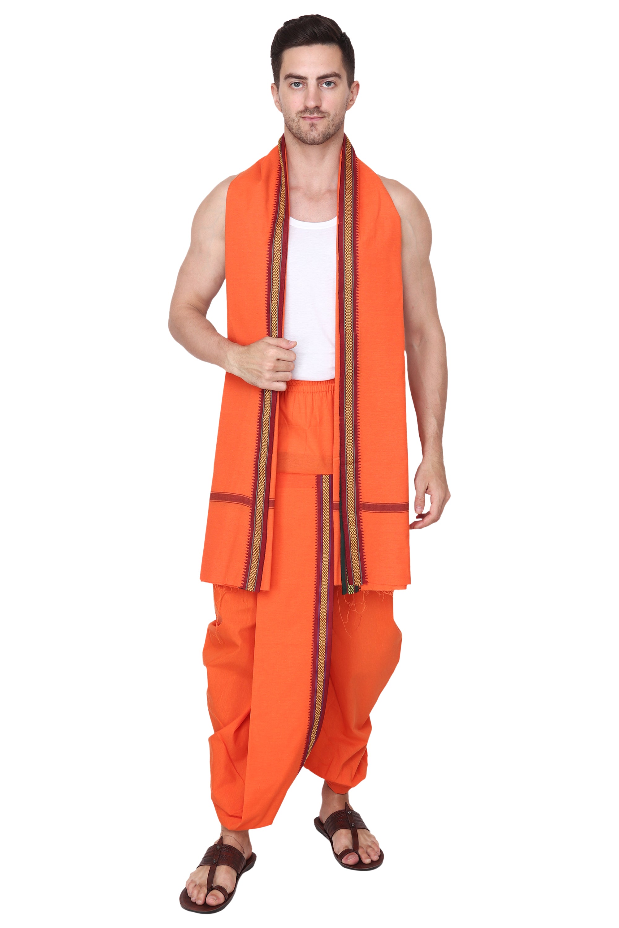 Orange - Bhagwa - Saffron - Dhoti Pant for Men with Angwastra