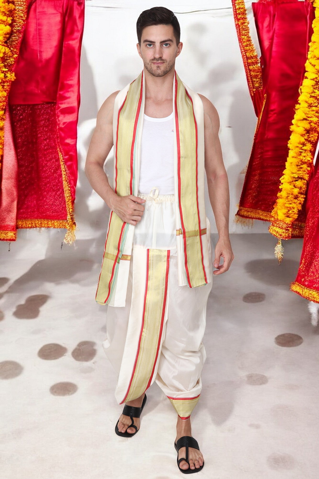 Silk Dhoti for Men - Readymade - Dhoti Angwastra Set